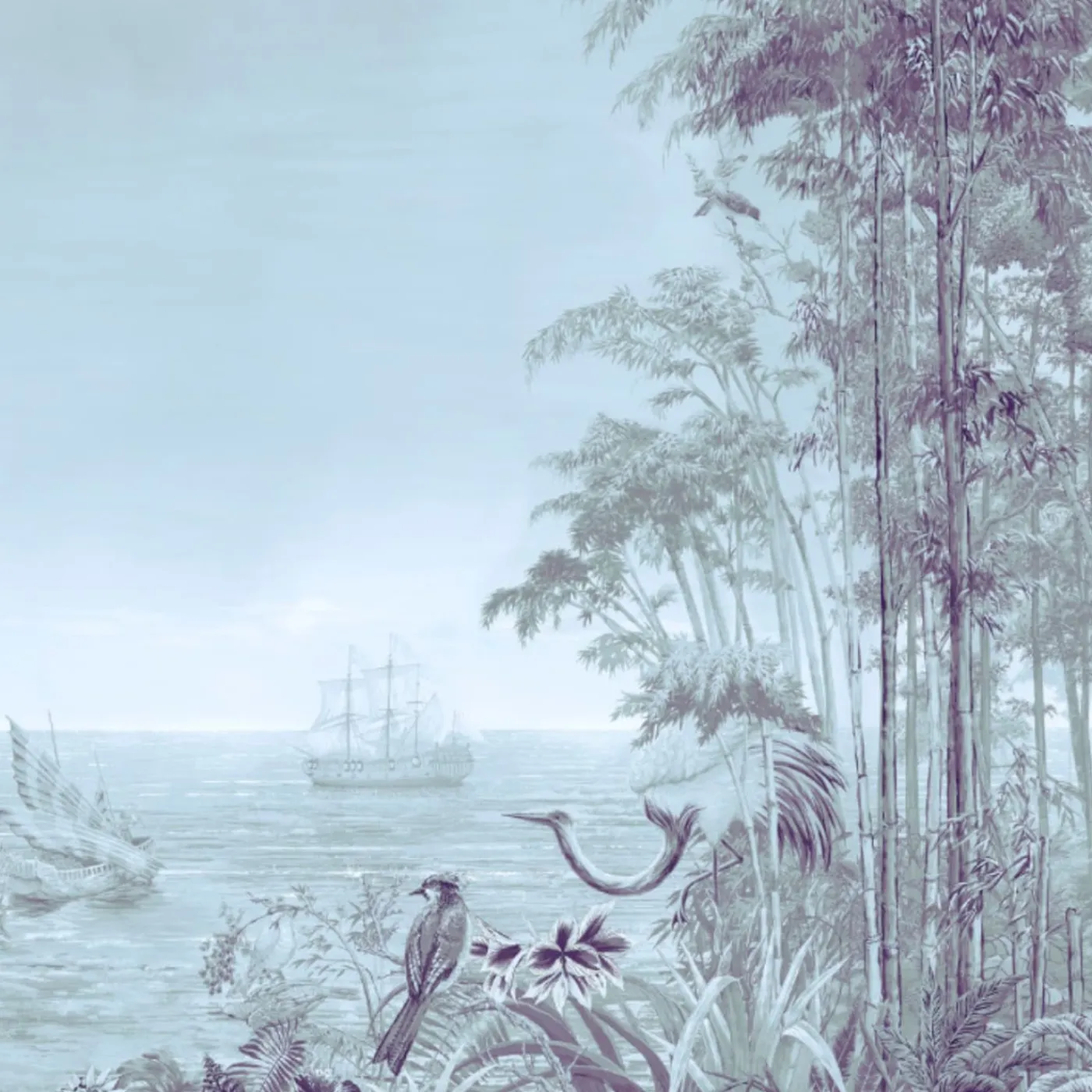 KOHRO Tessuto da rivestimento in cotone e lino blu West Of Java> Carte Da Parati