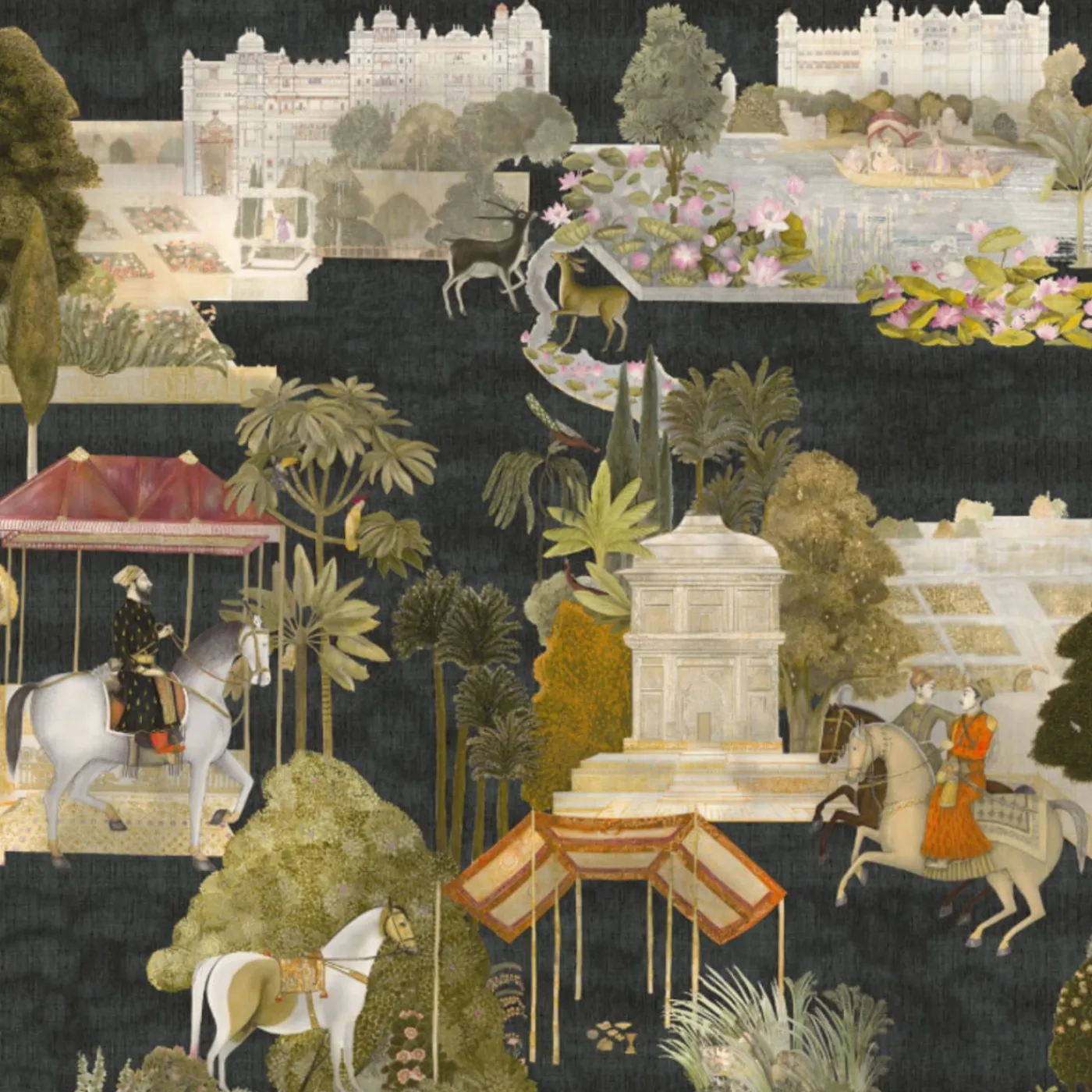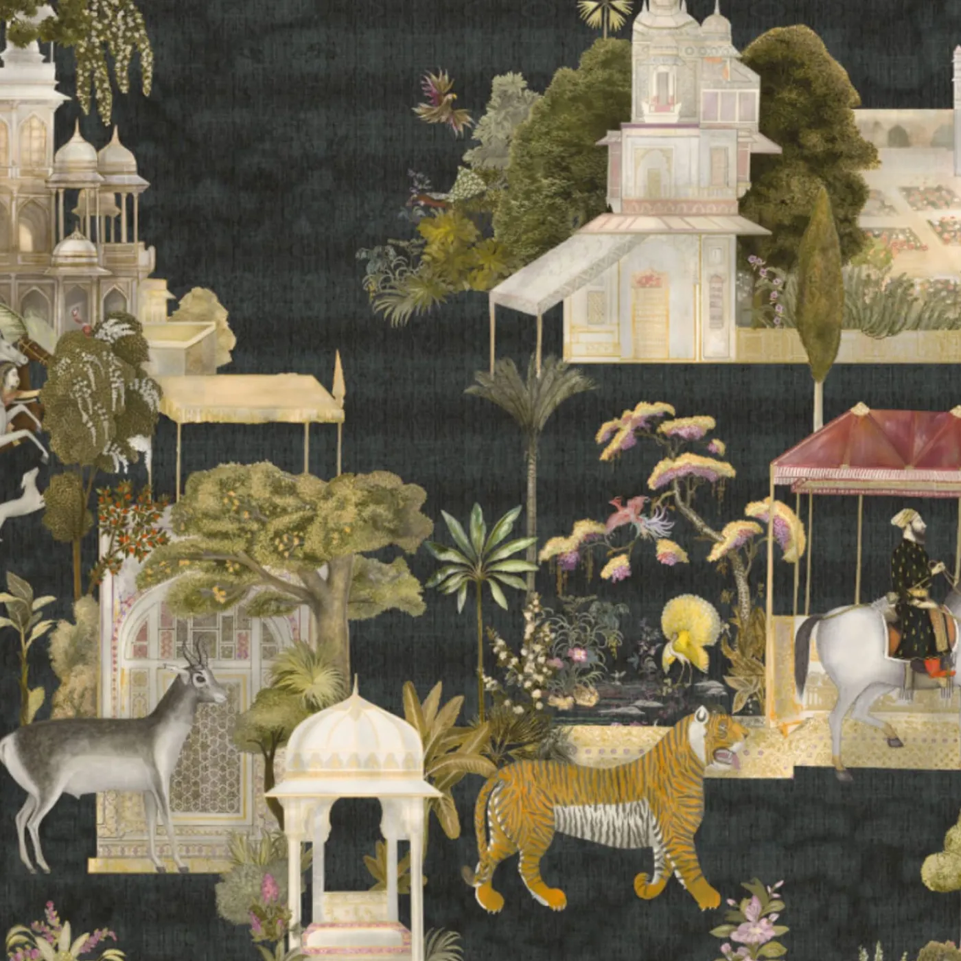 Il tessuto da rivestimento in cotone nero Rajasthan è caratterizzato da una straordinaria serie di elementi figurativi, tra cui motivi floreali, botanici e intricate rappresentazioni di animali, architettura e scene culturali. Ogni disegno invita gli spettatori a entrare in un mondo vivace di sete, spezie e ricche tradizioni, trasformando qualsiasi spazio in un affascinante arazzo di colore e vita. Progettato specificamente per un’installazione senza sforzo, questo tessuto può essere semplicemente teso sulle pareti, creando un look elegante e senza soluzione di continuità. Il prezzo è al metro quadrato e consente di adattarlo alle diverse dimensioni delle pareti. È disponibile anche in un’altezza alternativa di 270 cm. Per ulteriori informazioni, contattare il Concierge.