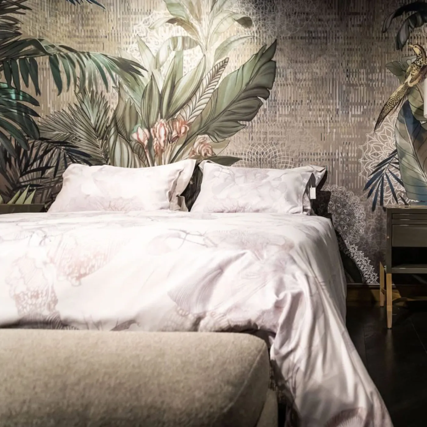 Ispirato alla dea delle acque celesti, questo squisito tessuto da rivestimento trasporta l’osservatore in un regno etereo tra cielo e acqua, riflettendo i temi della collezione “A Gong on the River”. Il disegno presenta 20 metri di illustrazioni intricate con piante, uccelli e fiori celesti, creando un arazzo ipnotico che invita all’introspezione e alla serenità. Il tessuto consente una facile installazione attraverso un semplice stiramento. Questo pezzo garantisce flessibilità nel design, consentendo la personalizzazione per adattarsi a pareti di varie dimensioni e preferenze. Il prezzo si intende al metro quadro ed è disponibile un’altezza alternativa di 270 cm. Per ulteriori informazioni, contattare il Concierge.