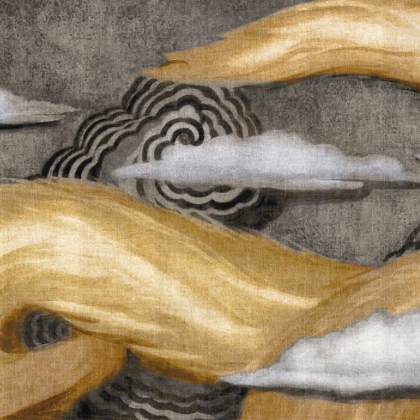 KOHRO Tessuto murale in cotone grigio e oro L’Oiseau de Feu> Carte Da Parati