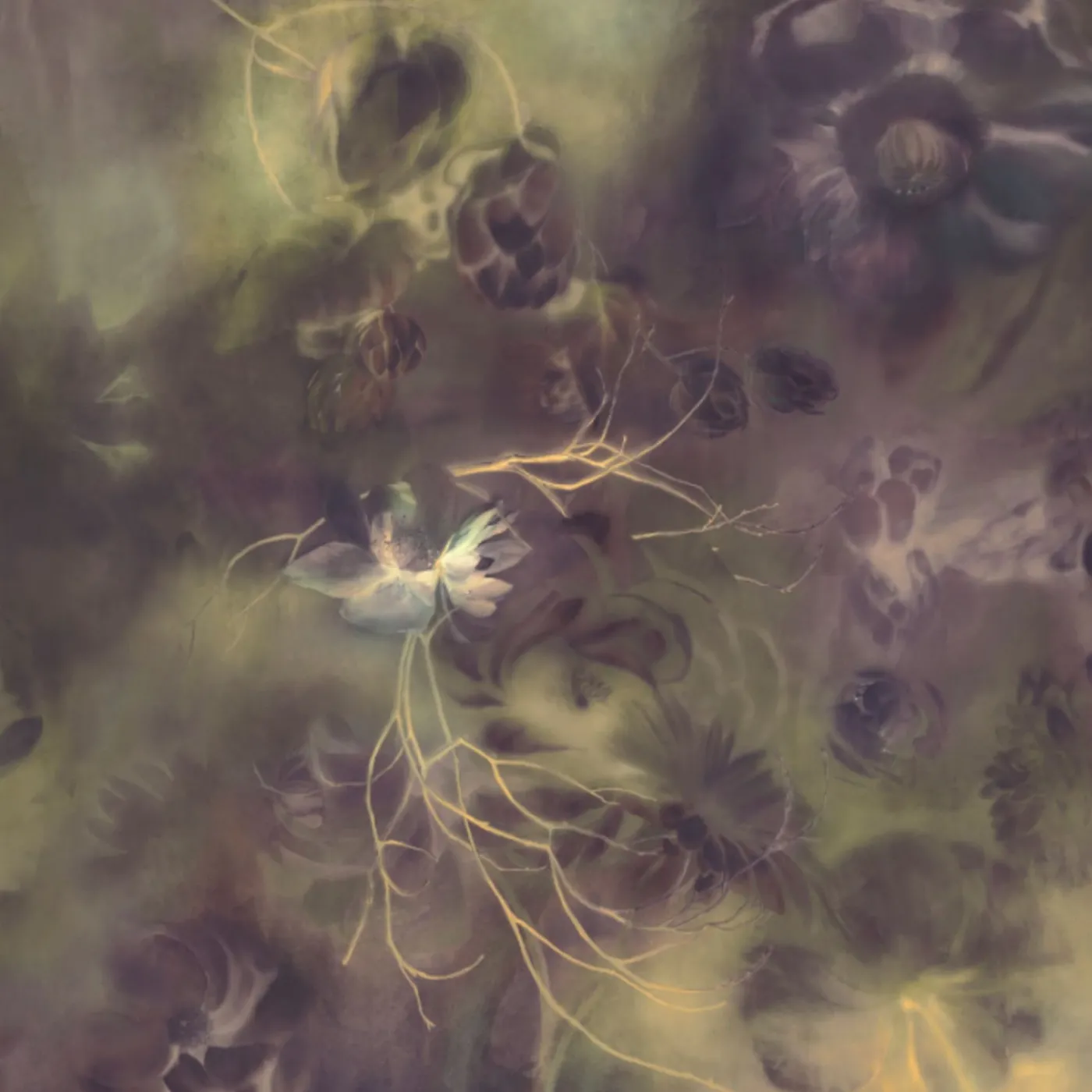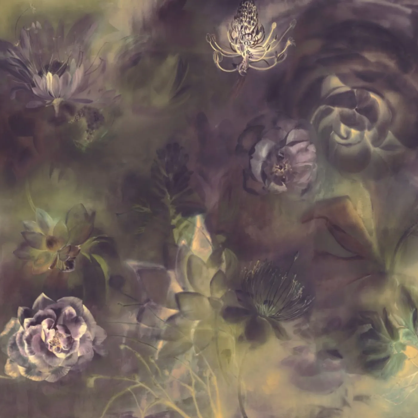 KOHRO Tessuto murale in cotone viola e oro Fleuraissance> Carte Da Parati