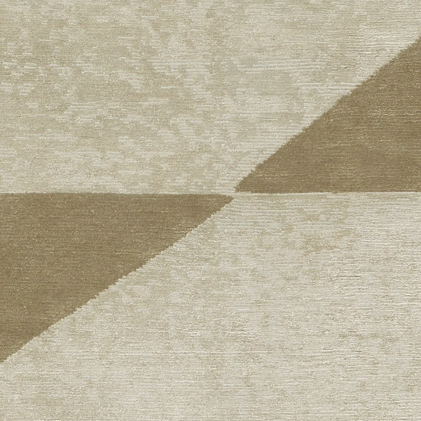 Grazie alla tradizionale tecnica di annodatura a mano, il disegno geometrico e la combinazione di 35% lana e 65% seta danno vita a questo elegante tappeto. Un pezzo perfetto per qualsiasi interno moderno, questo tappeto distintivo è stato realizzato a mano in Nepal e presenta un motivo di triangoli marrone-verdastri su uno sfondo grigio chiaro. Le misure standard sono 170×240, 200×250, 200×300, 220×300, 250×300, 250×350, 300×400, 350×420, 350 x500, 400×600 cm per il tappeto rettangolare e 250×250, 300×300, 400×400 cm per quello quadrato. È possibile ordinare dimensioni, colori e materiali personalizzati.