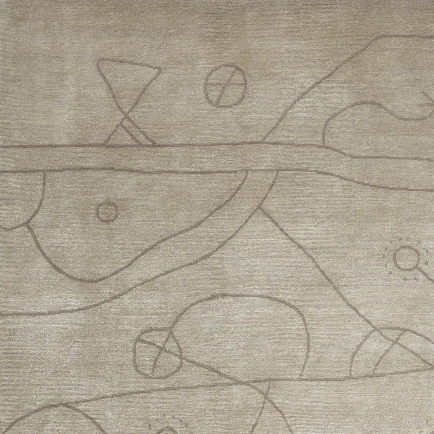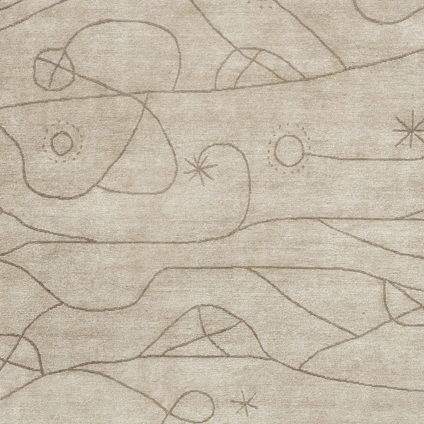 Annodato a mano in Nepal con una densità di 100 nodi, questo magnifico prodotto infonderà eleganza e fascino a qualsiasi arredamento moderno. Questo tappeto beige chiaro, con motivo grigio, è realizzato in lana filata a mano, lino naturale e seta di bambù e presenta un disegno naif di un paesaggio senza tempo.