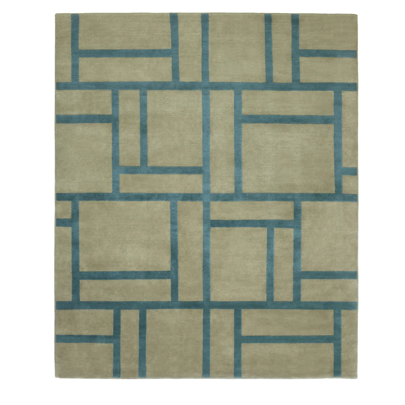 Questo magnifico tappeto, disegnato da Johanna Gullichsen, sarà una squisita aggiunta a qualsiasi casa. È stato annodato a mano in Nepal e i suoi 100 nodi sono in una morbida miscela di 50% lana e 50% seta. Lo sfondo verde-marrone chiaro è arricchito da quadrati e rettangoli che creano un motivo moderno e sofisticato in un vivace colore turchese, che si farà notare in ogni stanza. Colore e qualità personalizzati, pezzo unico.