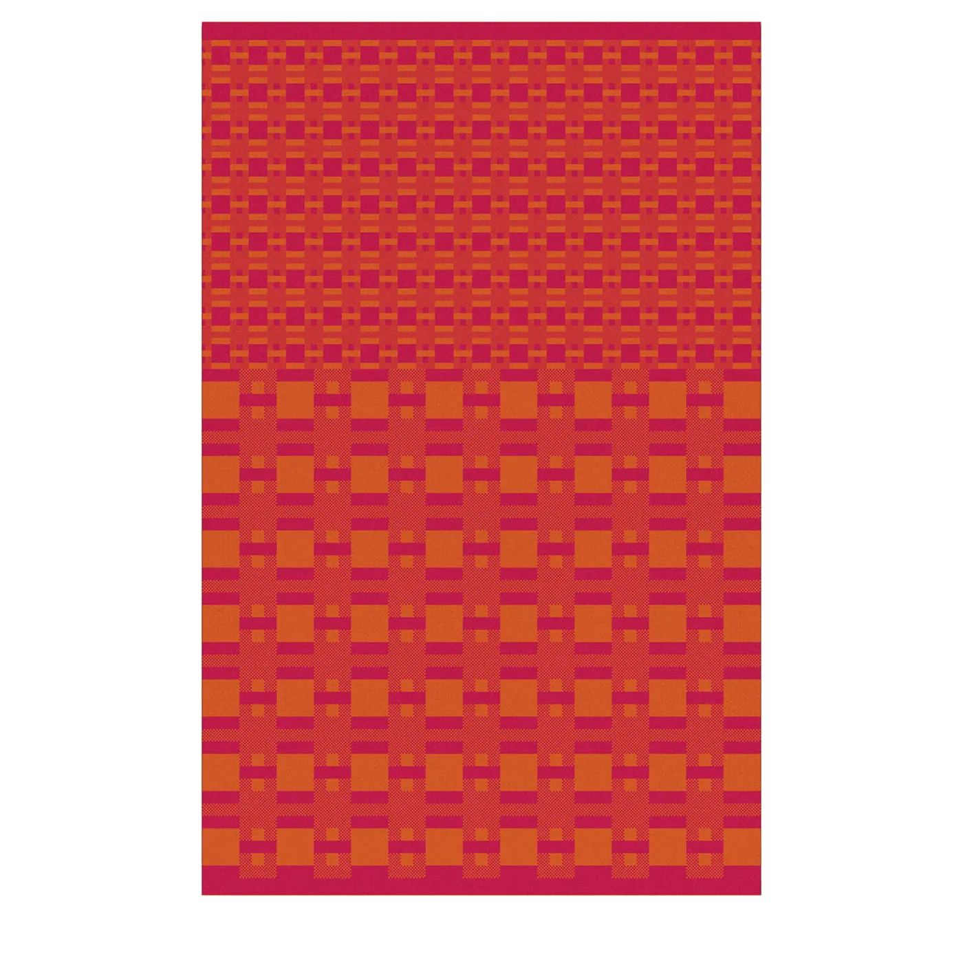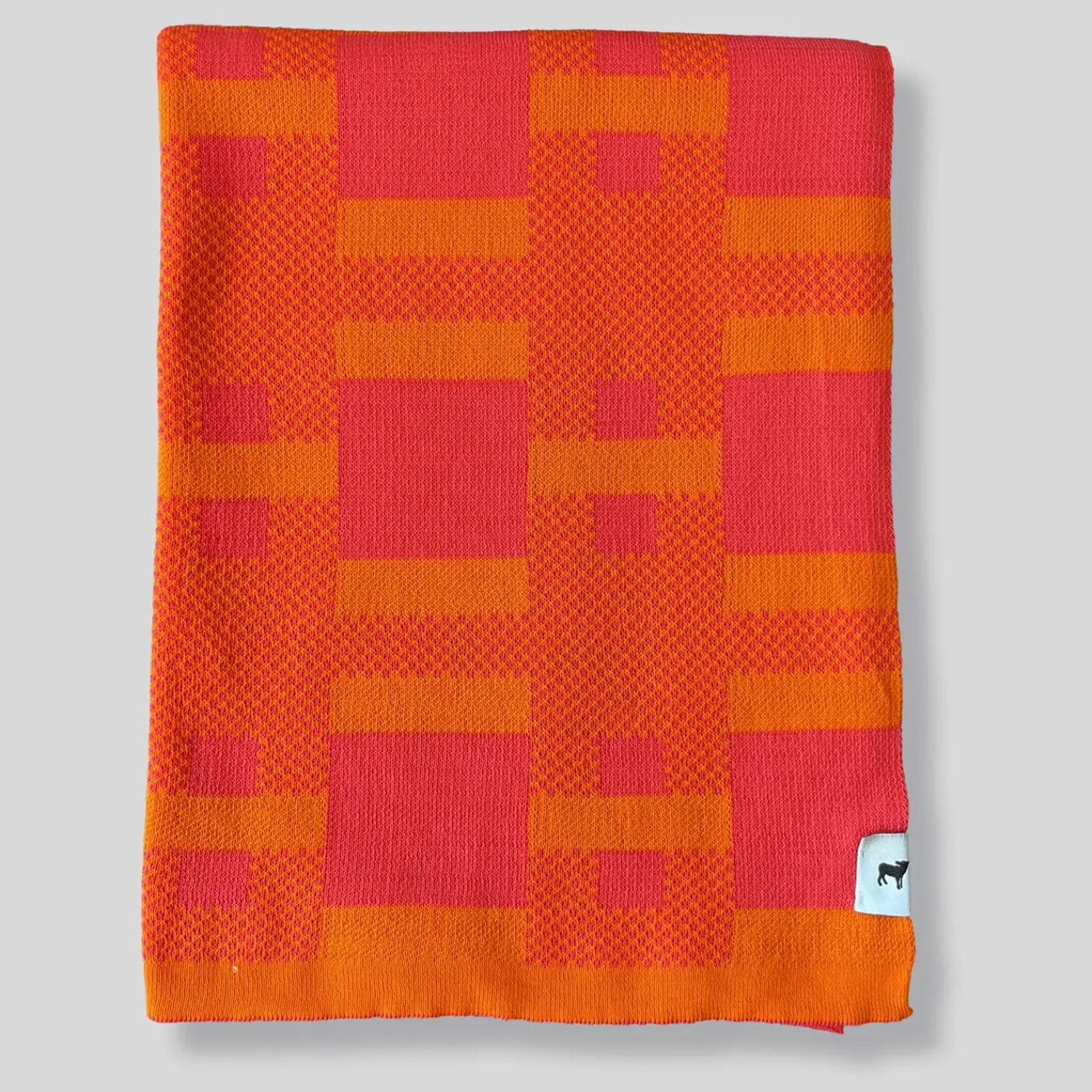 Le vibranti tonalità dell’arancio e del rosso sono quelle scelte per questa elegante coperta jacquard piqué-trama, un pezzo prezioso ottenuto dalla tessitura di pregiati filati di cotone bio a quattro capi. Il caratteristico motivo che sfoggia appartiene a un progetto computazionale in cui i motivi grafici sono generati casualmente utilizzando un codice Max/MSP. Nel catalogo Artemest è disponibile anche una versione gialla.