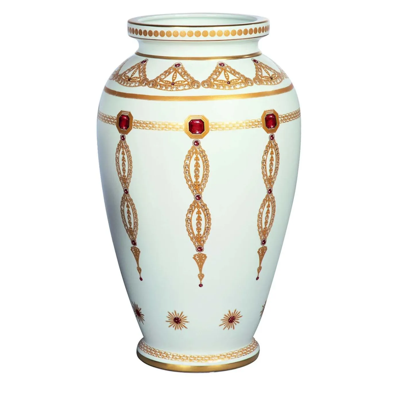 Ornato da preziose decorazioni gioiello e a raggiera, questo sofisticato portaombrelli in porcellana bianca è un complemento adatto a completare decorazioni sontuose. Il suo profilo classico esalta senza sforzo il fascino delle decorazioni, che mostrano molteplici sfumature di oro e rosso.