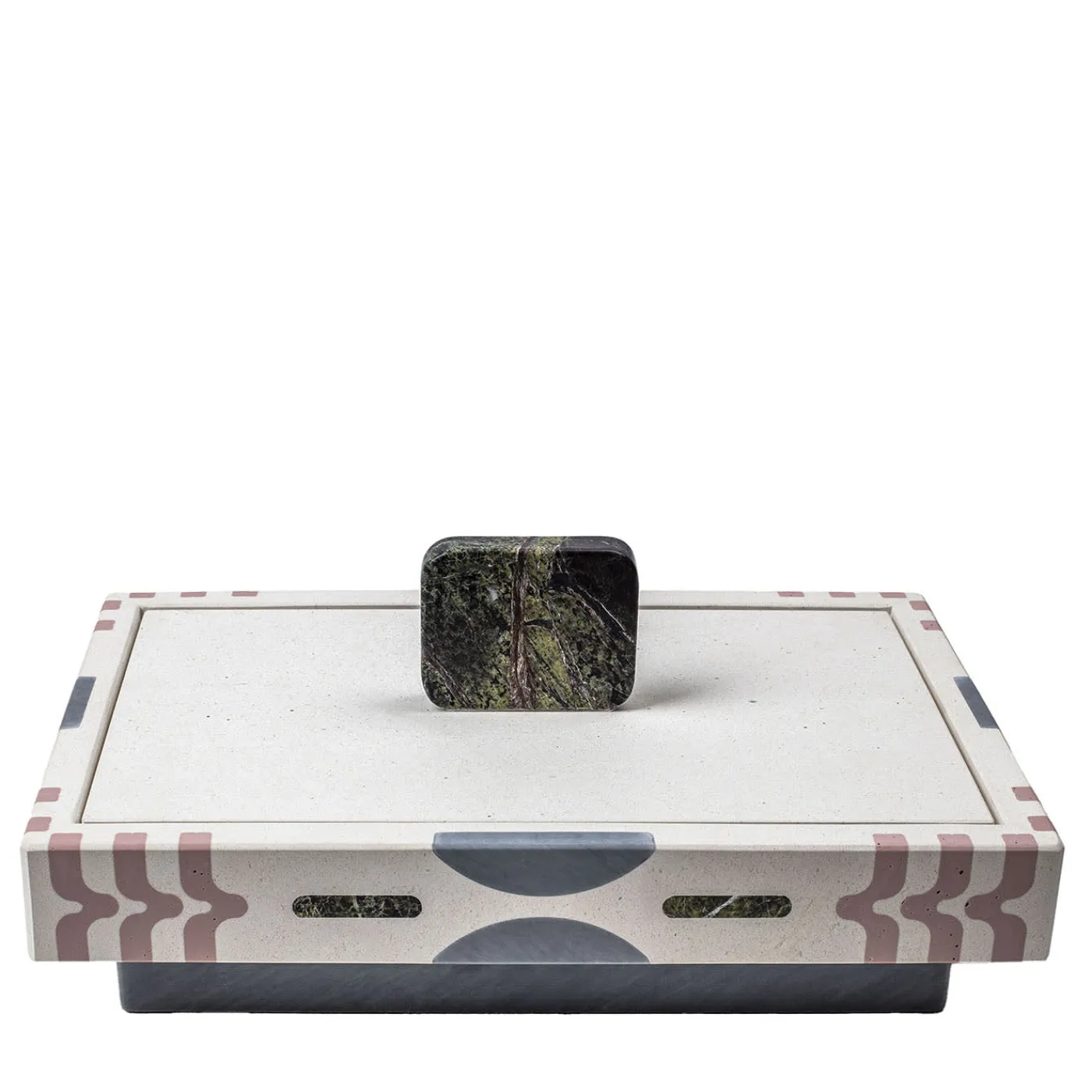 Limarsi è uno squisito centrotavola meticolosamente realizzato in marmo multicolore con l’intricata tecnica dell’intarsio. Composto da un’armoniosa miscela di Bianco Fenice, Bardiglio Imperiale, Pietra Pece, Rosalia e Green Forrest, le sue tonalità vibranti e i suoi intricati motivi mettono in risalto la maestria e la raffinatezza insite nel suo design.