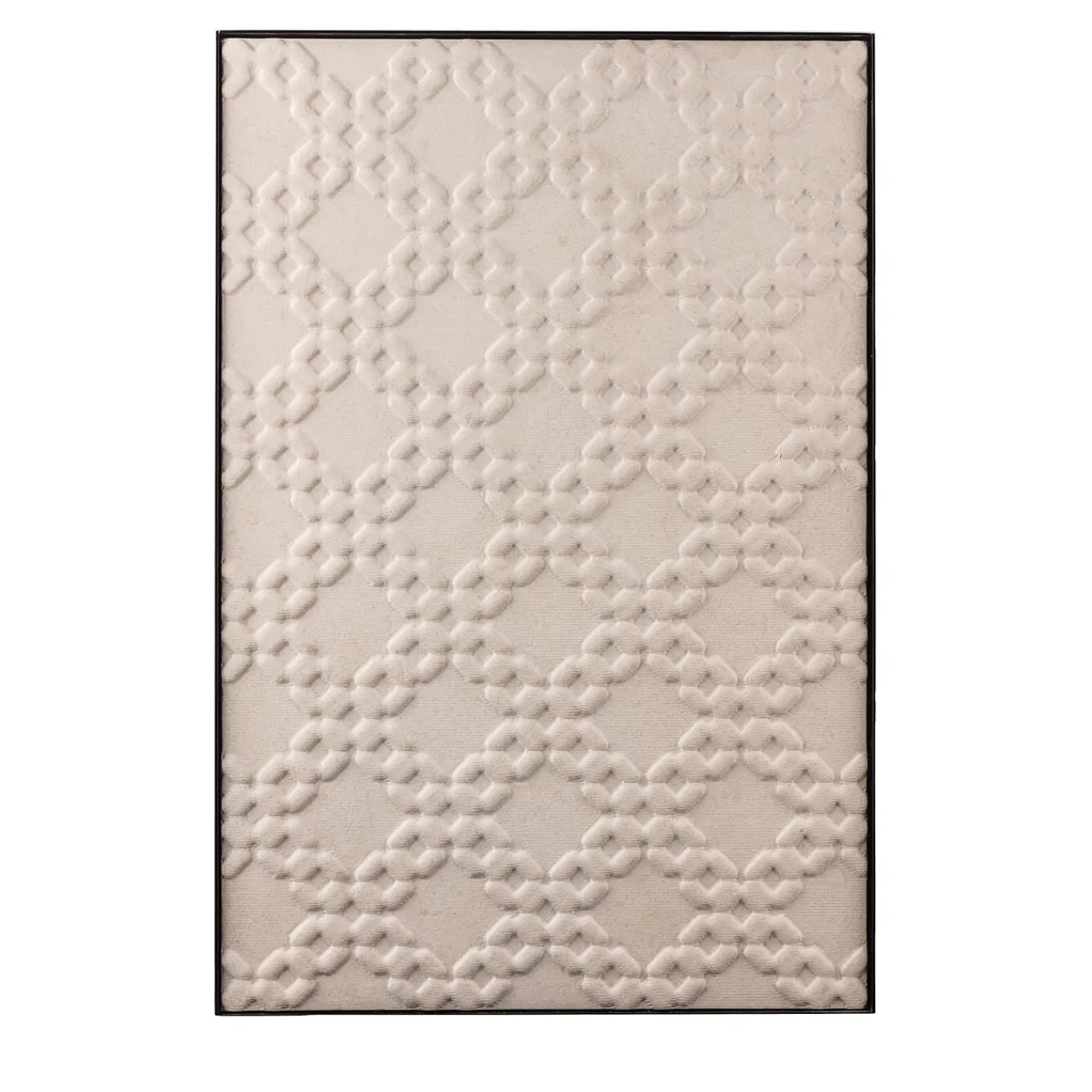 Makramè D in pietra Tunisi crema fa parte di un’esclusiva collezione di opere d’arte in pietra, che presenta superfici sviluppate nel tempo. Riflette la visione di designer come Michele De Lucchi, Marella Ferrera e Marco Piva, trasformando texture e geometrie in veri e propri capolavori. Incorniciato in metallo nero opaco, è facile da montare e si adatta a qualsiasi spazio. Omaggio all’artigianato Lithea, unisce tradizione e innovazione. Cornice inclusa.