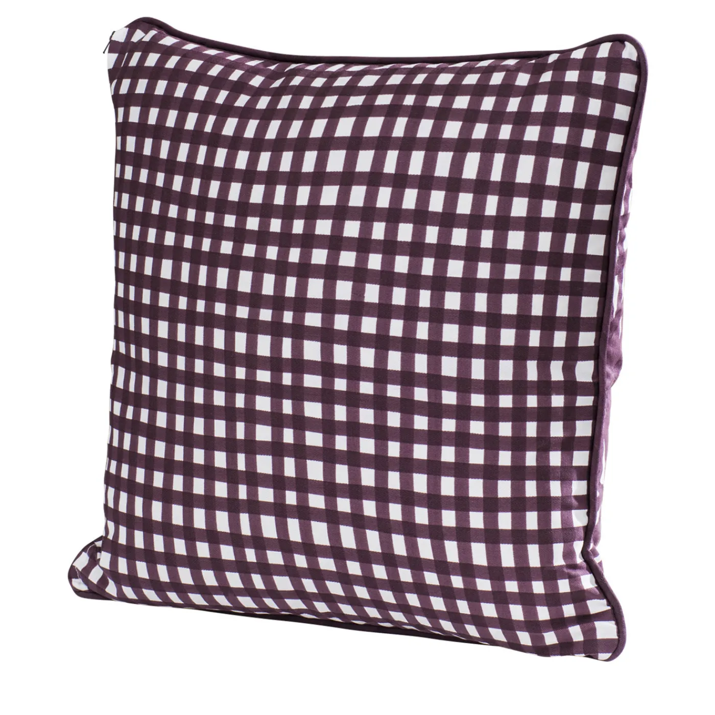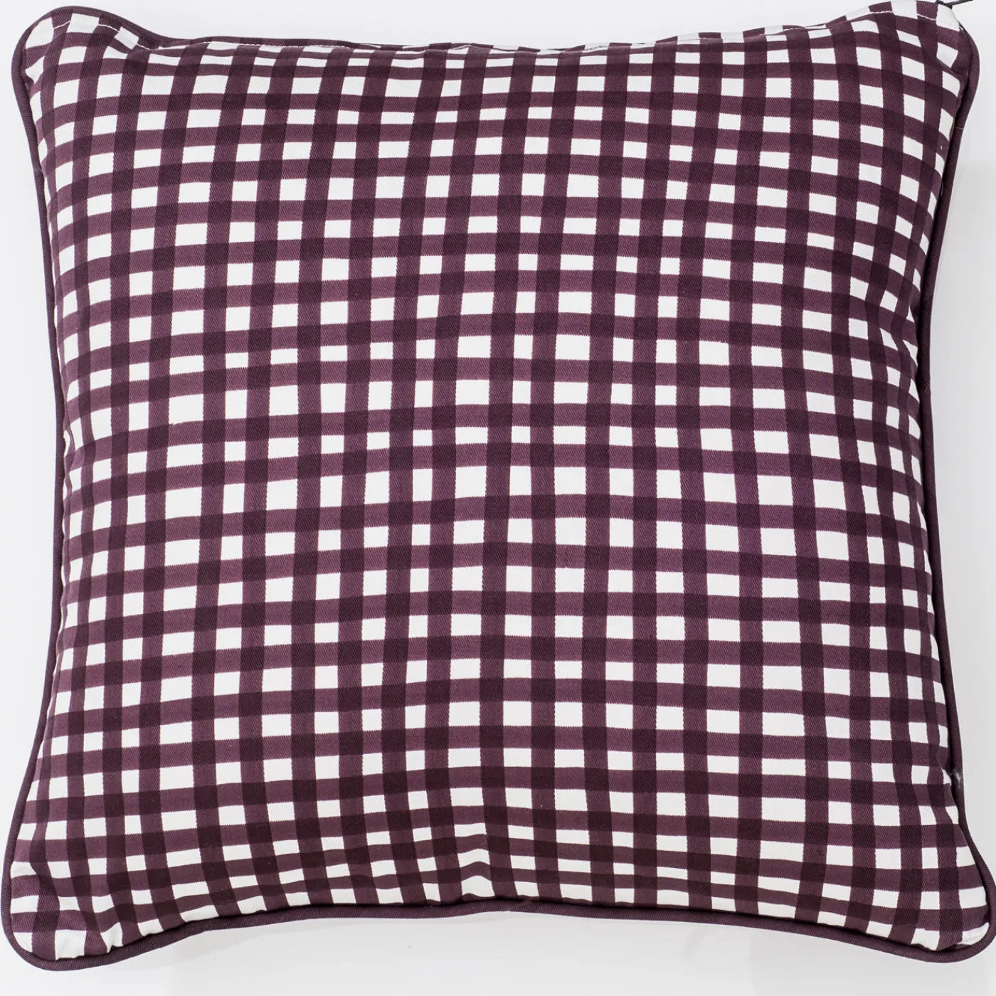 Questo elegante cuscino è dotato di un inserto in piuma d’oca e di una fodera in 100% cotone decorata con la tecnica della stampa a pigmenti con un suggestivo motivo a quadratini marroni.