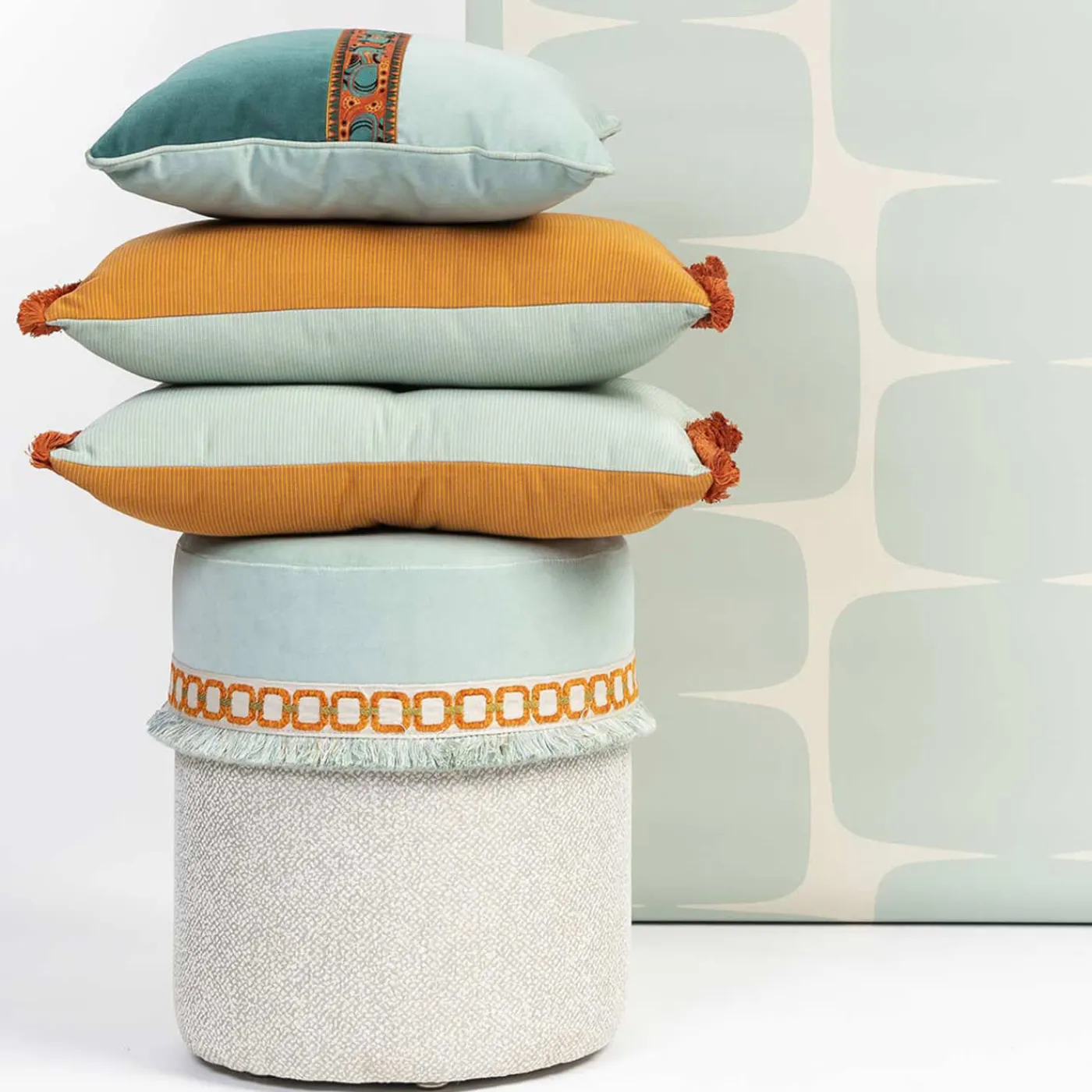Questo squisito pezzo appartiene all’esclusiva collezione POPHUG, che reinterpreta magistralmente la passamaneria classica con un tocco contemporaneo, integrando abilmente colori e texture vibranti provenienti dai lussuosi tessuti dell’Opificio. Incarnando l’essenza del benevolo drago orientale, questo cuscino emana calore e un abbraccio protettivo, simboleggiando comfort ed eleganza in qualsiasi spazio abitativo. Il design presenta un delizioso mix di varianti di passamaneria anni ’70, curate alla perfezione insieme a una sartoria esperta, per garantire un’aggiunta unica all’arredamento della vostra casa. Il cuscino non è solo visivamente accattivante, ma è anche realizzato con materiali di qualità superiore, con un’imbottitura anallergica e una comoda cerniera, per offrire lusso e praticità.