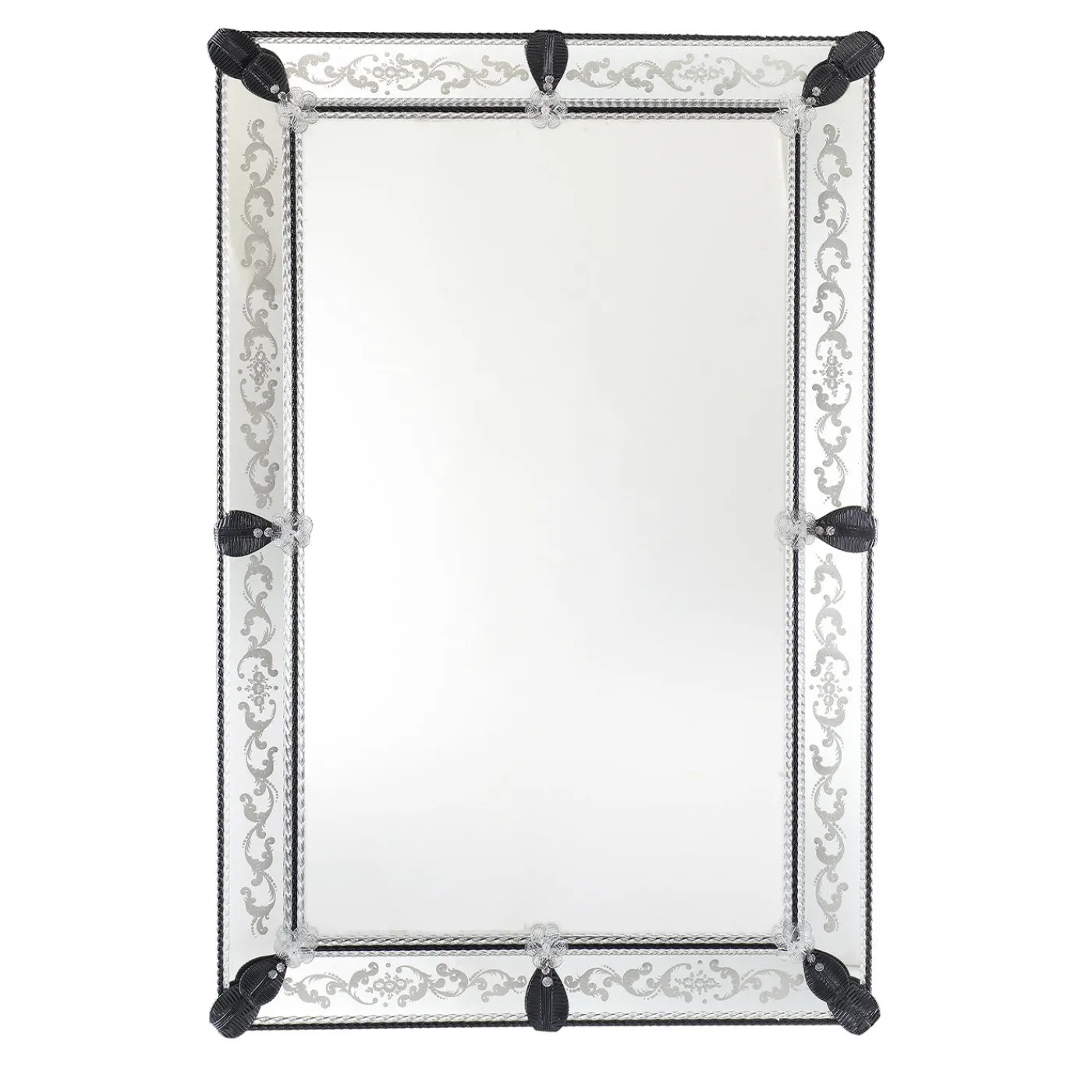 L’eleganza tradizionale è in bella mostra con lo specchio da parete Calle Rugani. Disponibile in diversi colori e dimensioni, lo specchio è la testimonianza di secoli di know-how artigianale. Su una cornice in legno verniciato, lo specchio è impreziosito da incisioni in argento e accenti in vetro nero e trasparente.