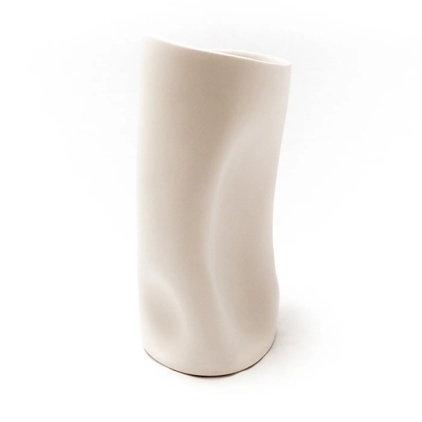 Raffinato pezzo decorativo per qualsiasi spazio contemporaneo, questo splendido vaso decorativo bianco seta è un singolare pezzo d’arte scultorea in ceramica italiana. Con una silhouette cilindrica allungata e sinuosa, ispirata alle curve naturali di un tronco d’albero, questo straordinario oggetto d’arte è interamente scolpito a mano con un processo di lavorazione del gres a pasta colorata. Così come non esistono due alberi uguali, non esistono due sculture uguali di questa collezione.