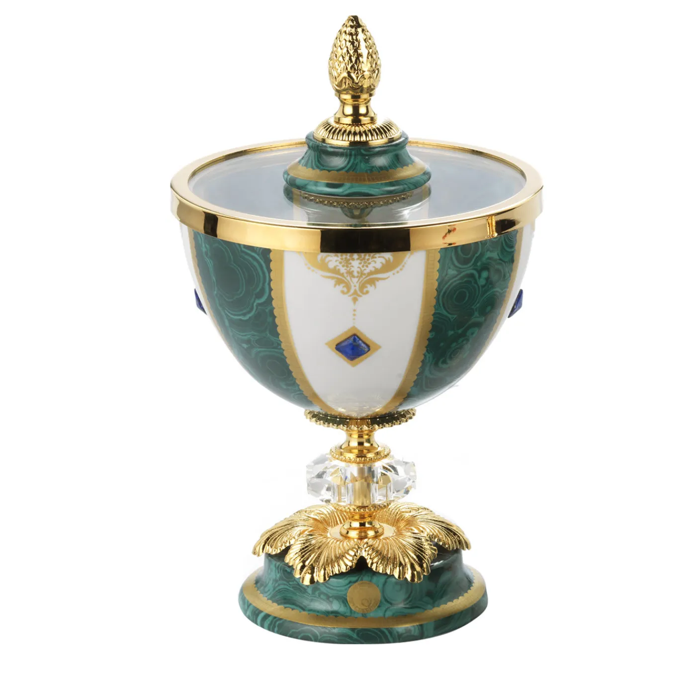 Questa magnifica scatola, con la sua forma e le sue decorazioni classiche, conferisce raffinatezza e fascino senza tempo a qualsiasi arredamento. La fine porcellana del pezzo e il suo coperchio sono decorati con accenti in oro zecchino, cristallo e ottone.