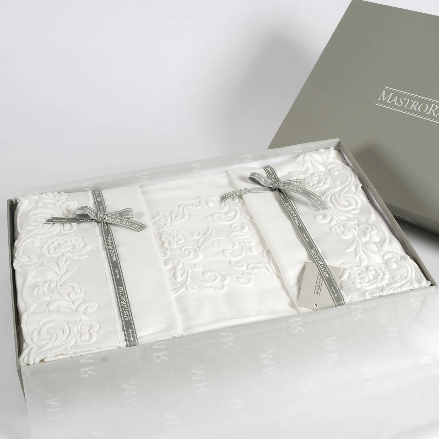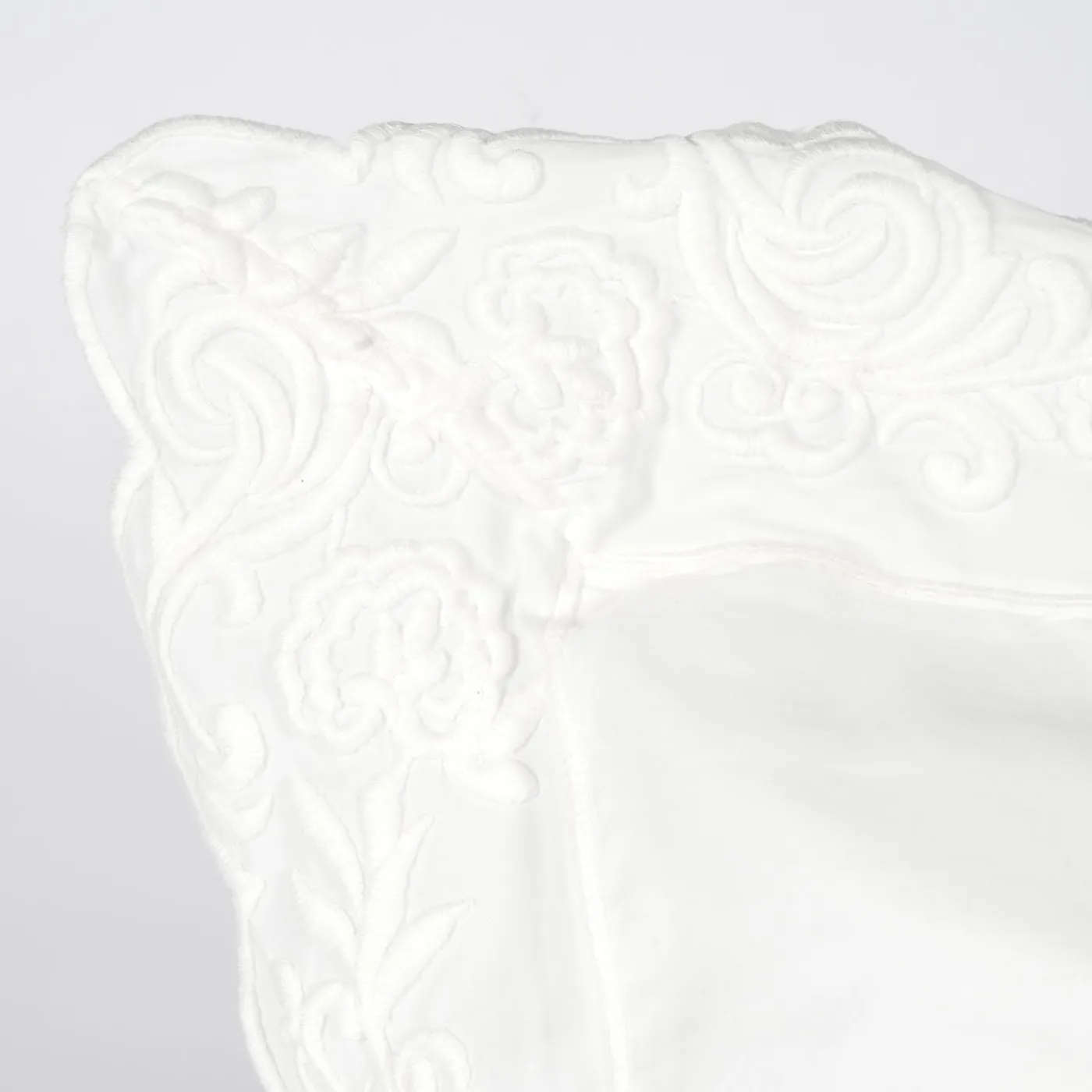 Il set di lenzuola Dune Merveille è realizzato in cotone tinto in capo, offrendo un eccezionale morbidezza e una piacevole sensazione al tatto. Caratterizzato da un polsino ricamato e federe con tripli volant e delicati ricami, combina dettagli raffinati con un lusso sobrio. Include un lenzuolo sopra (265×290 cm), due federe con 3 volants (50×80 cm) e un lenzuolo sotto con orli semplici (265×290 cm).