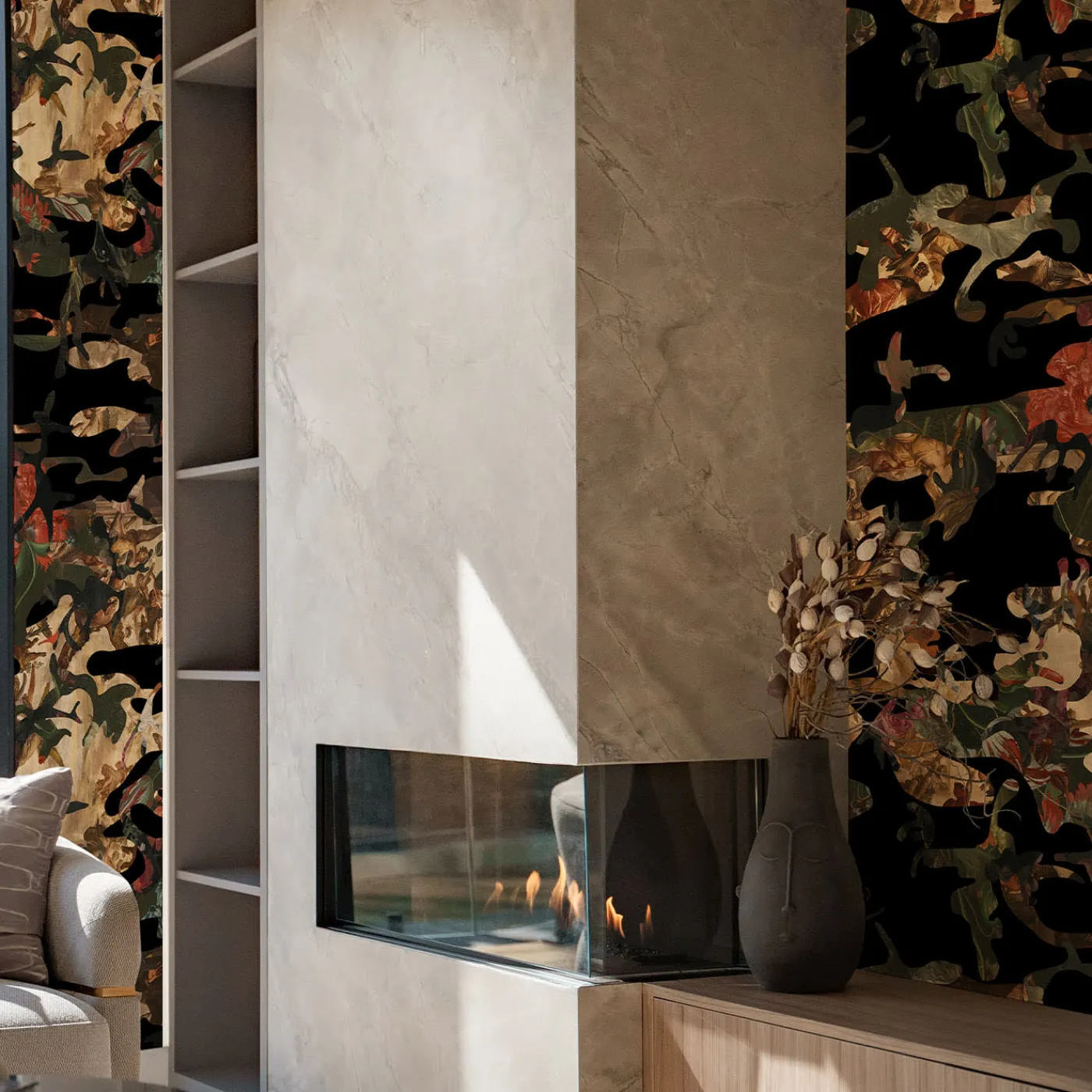 Creando l’ultimo camuffamento massimalista, “Hidden in Plain Sight” è composto da pezzi di dipinti per creare opere d’arte nuove e audaci. Mettendo insieme varie ispirazioni, Gjoen crea un’opera d’arte multistrato di scoperta. Più si guarda e più si trova, in linea con il suo metodo di iniziare ogni opera con una ricerca. La base del camouflage raffigura il soffitto dell'”Allegoria nuziale” di Giovanni Battista Tiepolo alla Ca’ Rezzonico di Venezia.