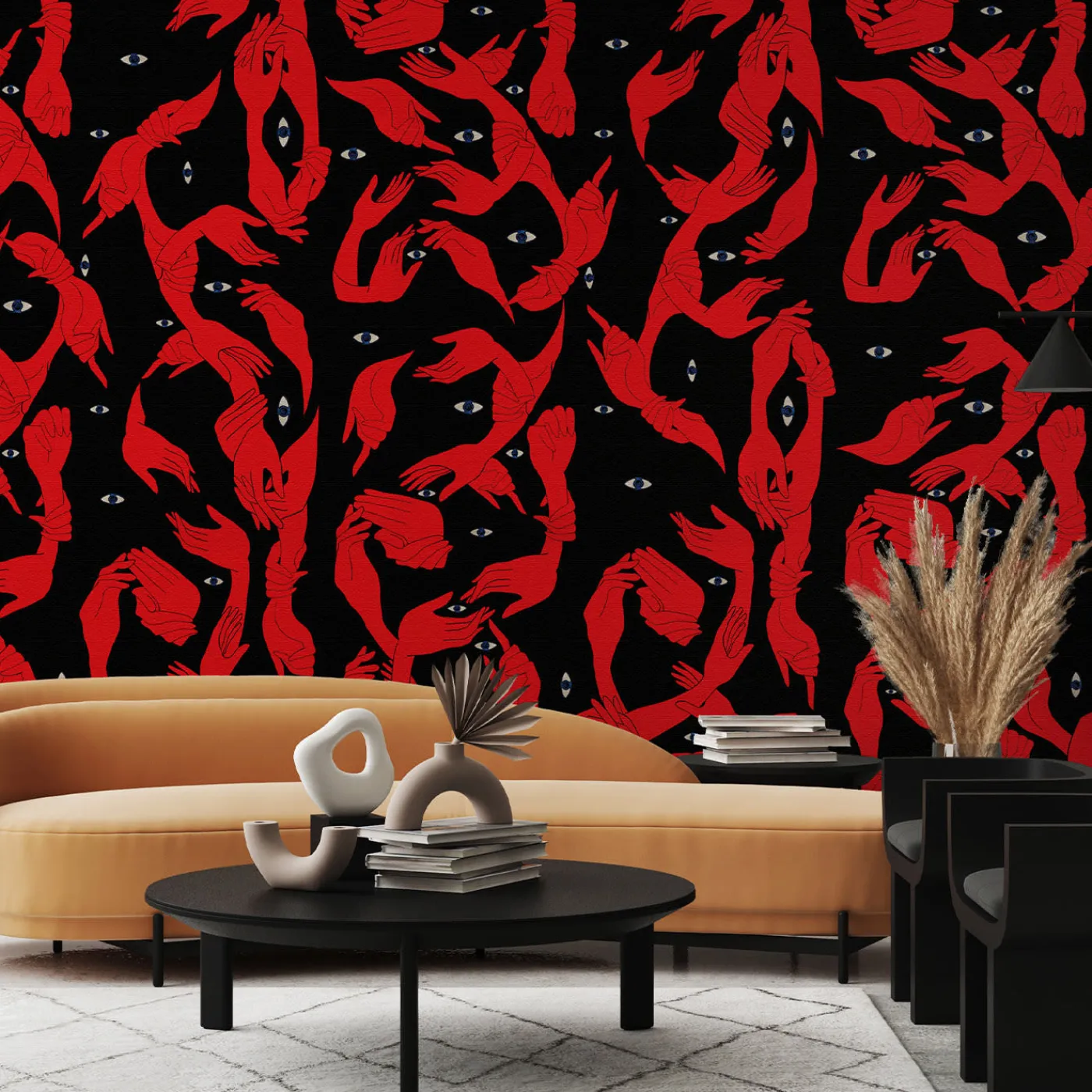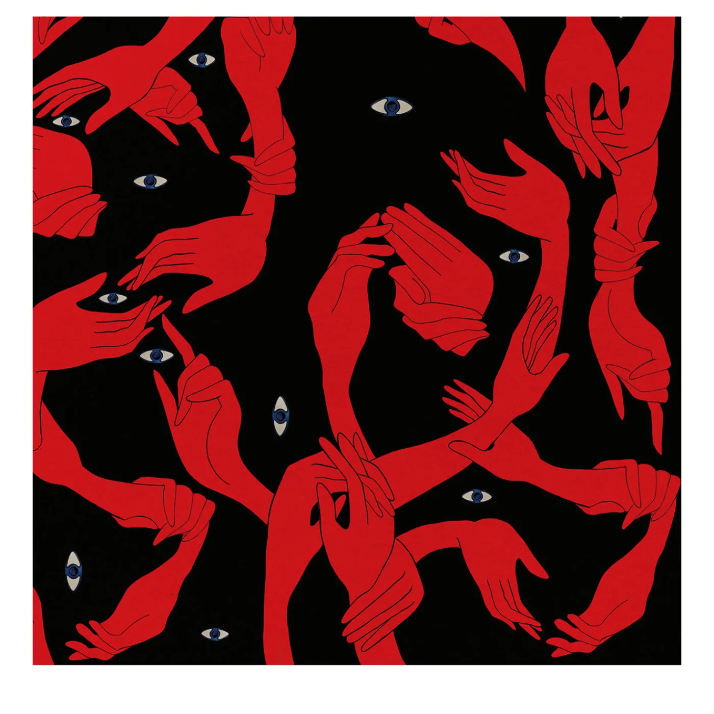 Qui una miriade di mani si intreccia, dando vita a un moto perpetuo che dà forma a un mondo visionario. Forme e colori giocano brutti scherzi agli occhi. I soggetti sono mani. I volti. L’infinita metamorfosi è una sorpresa costante. Ci sono così tanti punti di vista che non possiamo sapere quale rifletta la realtà. Miscele di sfumature e disegni grafici sono la base stilistica di questo eclettico mix di colori e texture contrastanti. Il risultato è un surrealismo senza precedenti.