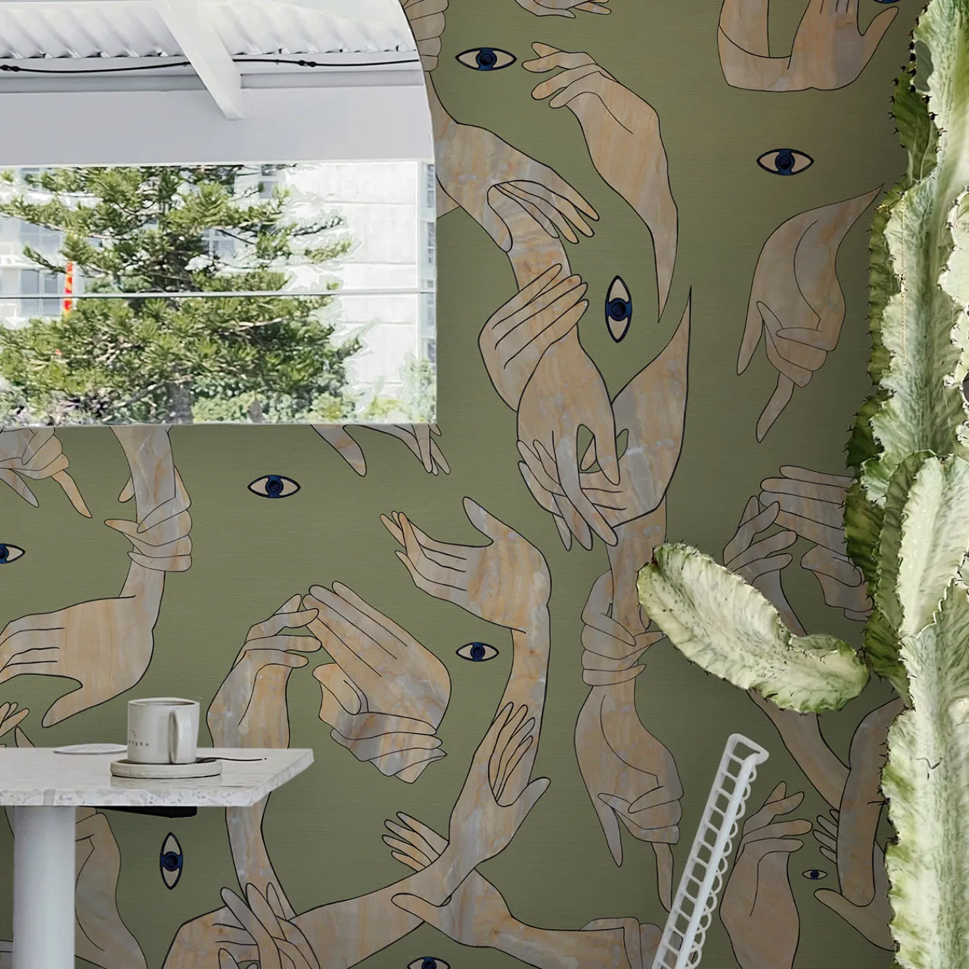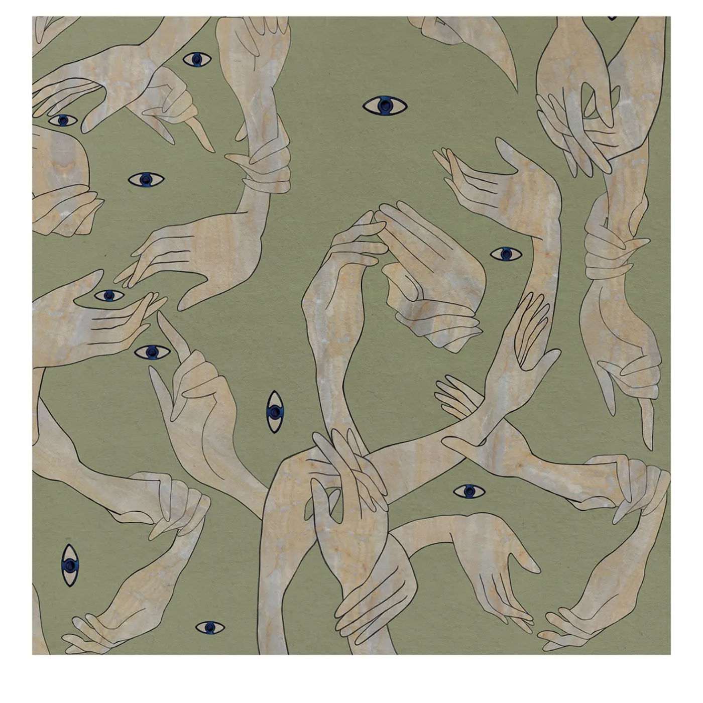 Qui una miriade di mani si intreccia, dando vita a un moto perpetuo che dà forma a un mondo visionario. Forme e colori giocano brutti scherzi agli occhi. I soggetti sono mani. I volti. L’infinita metamorfosi è una sorpresa costante. Ci sono così tanti punti di vista che non possiamo sapere quale rifletta la realtà. Miscele di sfumature e disegni grafici sono la base stilistica di questo eclettico mix di colori e texture contrastanti. Il risultato è un surrealismo senza precedenti.