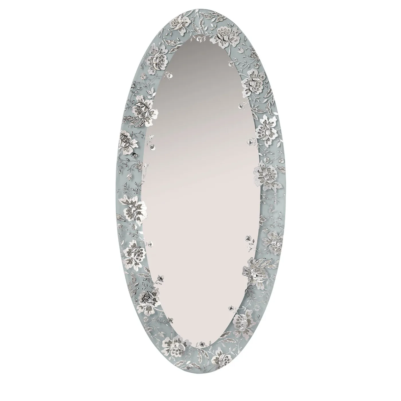Lo specchio da parete ovale grande Isabelle presenta una silhouette allungata che evoca eleganza e grazia, arricchita dal suo generoso intaglio floreale che aggiunge texture e profondità intricate. Ogni specchio è unico, con variazioni artigianali che ne mettono in risalto la manifattura. Le proporzioni slanciate lo rendono un pezzo straordinario, perfetto per elevare l’estetica di qualsiasi parete con raffinata poesia e fascino classico.