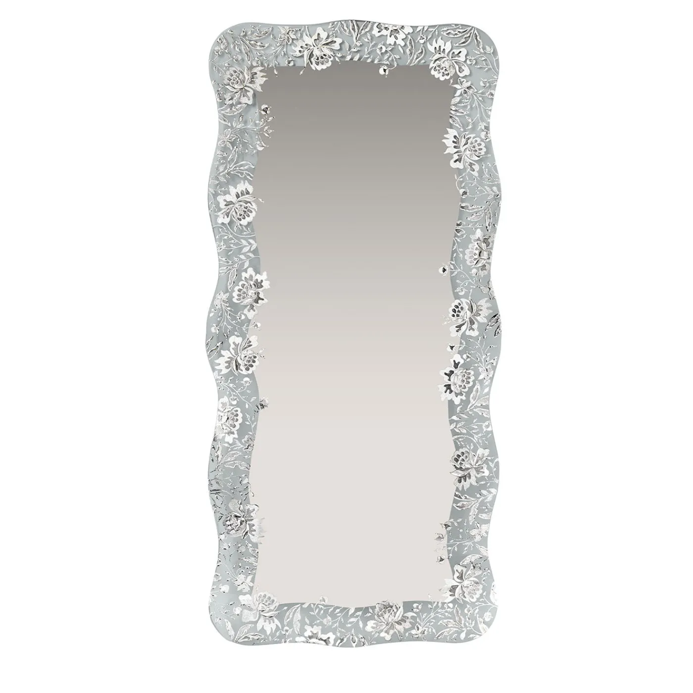 Lo specchio da parete Ondine presenta una silhouette raffinata e fluida che evoca il movimento elegante dell’acqua. Leggermente più compatto rispetto al suo omologo Vivienne, offre un’elegante equilibrio tra forma e funzione. La cornice dello specchio è adornata con delicate incisioni floreali, che aggiungono un sottile tocco decorativo al profilo sinuoso. Ogni pezzo è realizzato individualmente, con leggere variazioni e piccole imperfezioni che ne esaltano il carattere unico e il fascino artigianale.