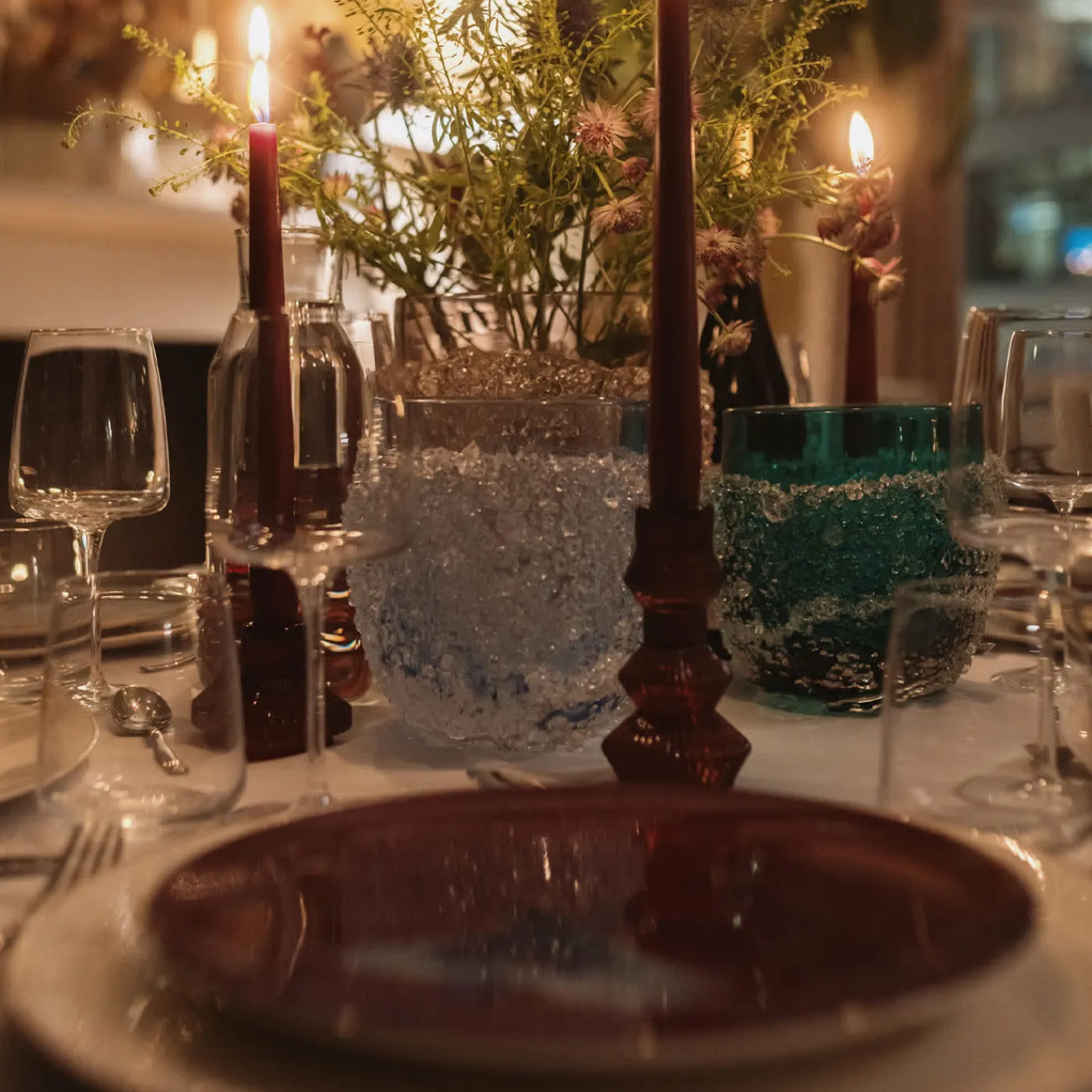 Ghiaccio – la parola italiana per indicare il ghiaccio – è l’effetto prodotto dai “Granzioli”, piccoli frammenti di vetro che ricordano il ghiaccio tritato. Per creare questa speciale texture, un letto di Granzioli viene applicato sul pezzo principale mentre è ancora incandescente. Il risultato è uno strato spesso e irregolare di granuli di vetro che avvolge la superficie del vaso. Per evidenziare il contrasto, una parte del vaso è lasciata scoperta e liscia. Questo vaso è realizzato a mano e firmato.