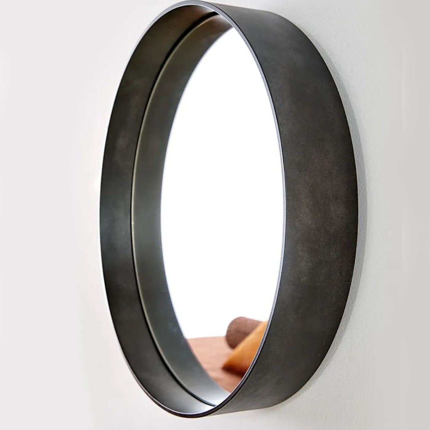 Testimonianza dell’eleganza industriale, questo specchio da parete rotondo è ideale per essere sospeso su consolle o lavabi in raffinati contesti contemporanei. Lo specchio rotondo è incastonato in una cornice di ferro ad anello proposta in un’affascinante tonalità nera che ricorda la lava raffreddata (disponibile anche in diverse opzioni di colore). Contattare il Concierge per conoscere il prezzo della variante con luce LED lungo il perimetro.