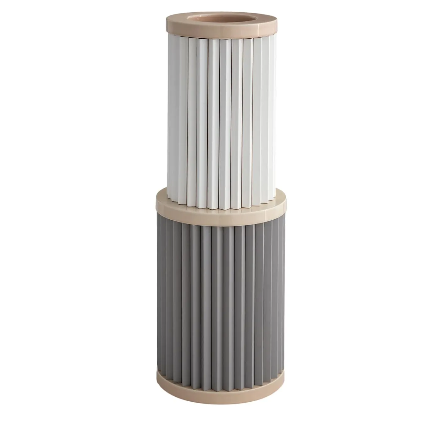 Disegnato da Ronan & Erwan Bouroullec e realizzato in collaborazione con Bitossi, questo pezzo unico appartiene all’esclusiva serie di vasi Rombini, contraddistinta da sofisticate scelte cromatiche abbinate a un’estetica elegante e architettonica di ispirazione pulita ed essenziale. Realizzato artigianalmente in ceramica con la tecnica della bicottura e reso nelle finiture rosa opaco, grigio e bianco. È disponibile in un’ampia gamma di colori e composizioni; per le opzioni, consultare il catalogo Artemest.