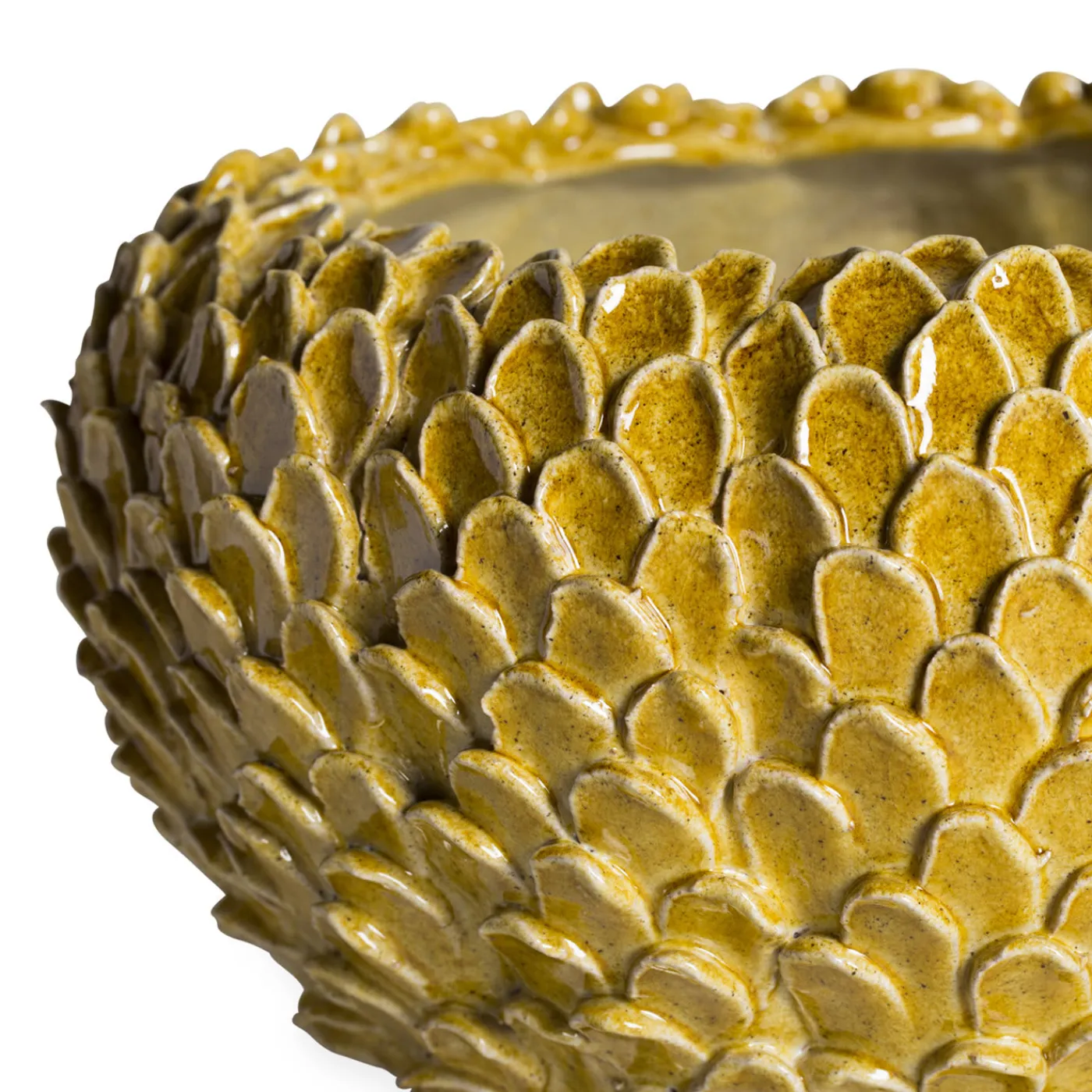 I singoli petali conferiscono una splendida consistenza a questa ciotola in maiolica giallo terra, magistralmente realizzata a mano dagli artisti ceramisti dell’atelier toscano ND Dolfi.