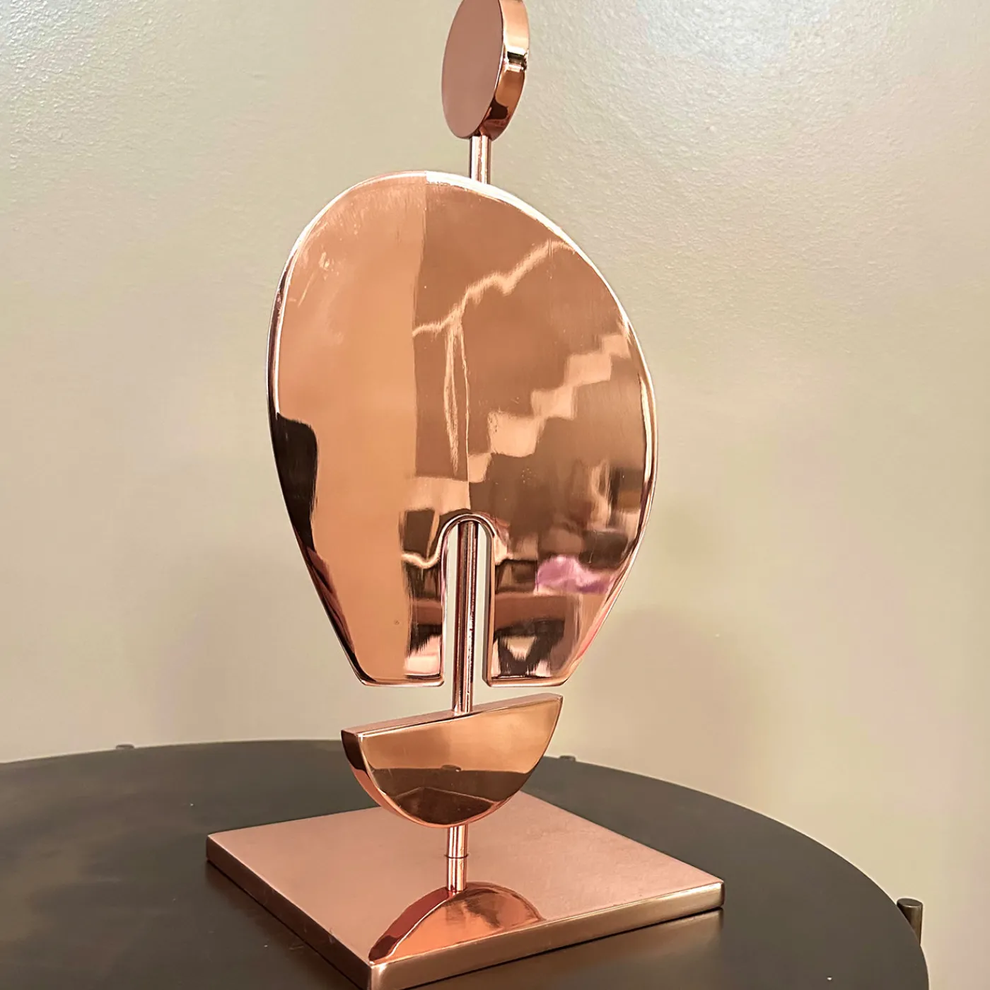 “Umanoide” è una scultura che presenta un profilo antropomorfo progettato per ruotare e trasformarsi nello spazio. Ispirata a forme primordiali e infusa di un’estetica moderna, funge da oggetto d’arte coinvolgente. La forma dinamica è composta da elementi assemblati con precisione e curve organiche e lisce. Finitura in rivestimento galvanica rame rosa e ottone lucidato, quest’opera aggiunge sia profondità artistica che movimento giocoso a qualsiasi ambiente.