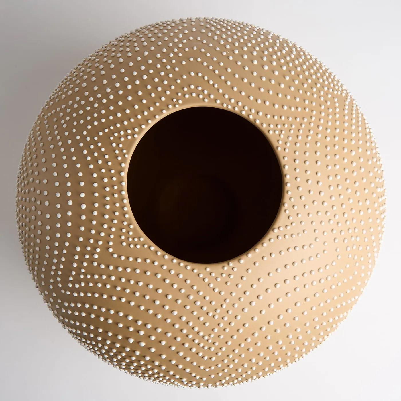 Arkadia è la regione greca favolosa per il suo scenario di vita idilliaco. Essenziale, arcaica, pura, una forma preistorica, un archetipo sempreverde dove la sfera rappresenta il “ventre”, l’accoglienza, la rotondità, il femminile, lo zero, il campo per tutte le possibilità. “Il Riccio/il riccio” viene reinterpretato recuperando un antico mandala sacro che rappresenta il “seme”, l’origine, il maschile, il primo principe, la gemma riproduttiva. Dedicato a tutte le vite “sacre” di questa terra.