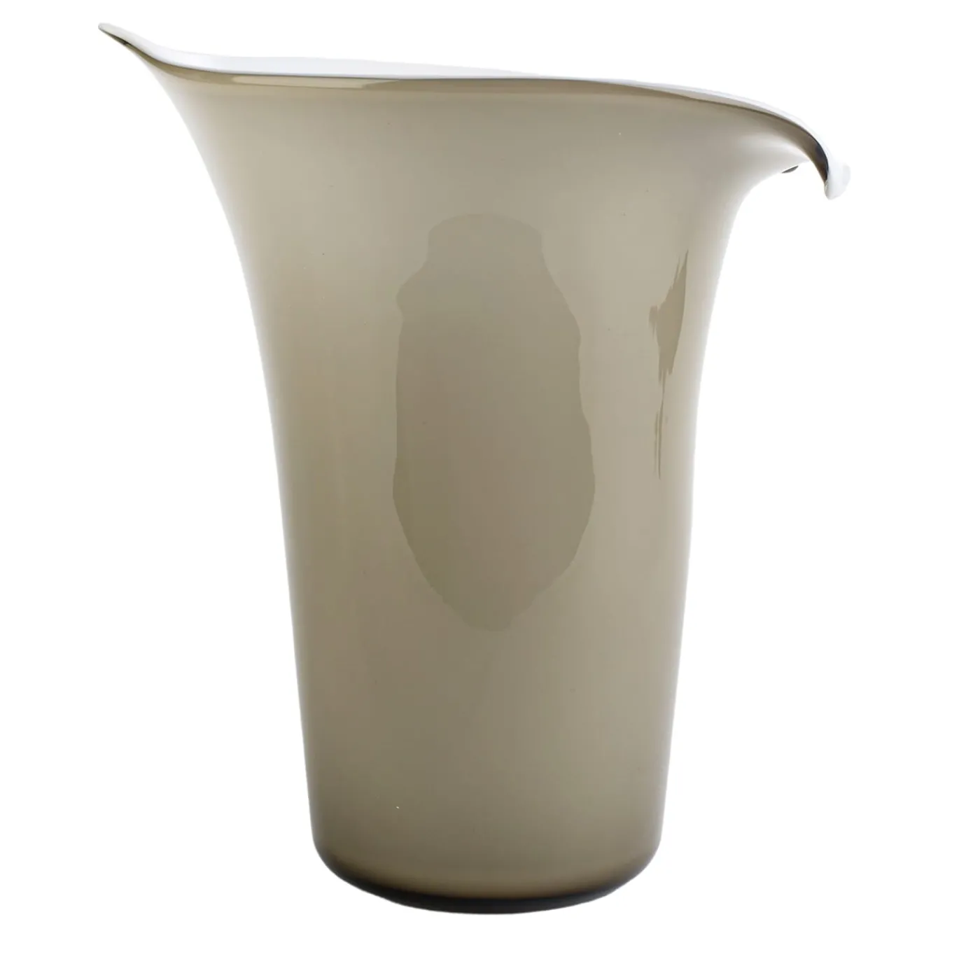 Elegante riproduzione di un delicato bocciolo di calla, questo sofisticato vaso soffiato a bocca in vetro di Murano è una vetrina di abile artigianalità. I suoi bordi fluidi rivelano dolcemente la dicotomia di sfumature tra l’interno e l’esterno, ottenuta con la tecnica dell'”incamiciato”, in cui due lastre di vetro di colore diverso – qui bianco e grigio – vengono parzialmente fuse per trasformarsi in un’unica lastra bicolore.