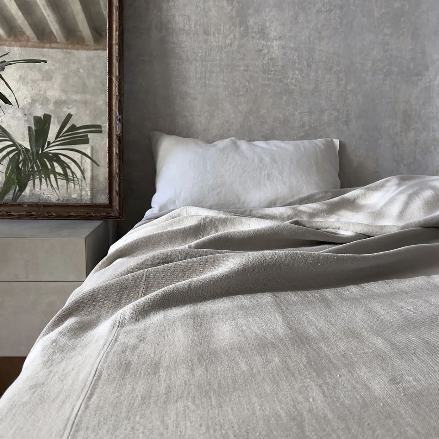 Once Milano Copriletto in Lino Pesante Sabbia con Cuciture> Biancheria Da Letto