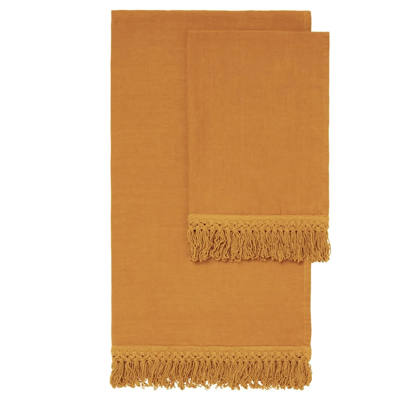 Date un tocco di carattere al vostro bagno con questo set di asciugamani in lino color senape, caratterizzato da lunghe frange per un maggiore stile. Il set comprende un asciugamano piccolo (40 cm x 60 cm) e un asciugamano grande (60 cm x 100 cm), perfetto per combinare eleganza e funzionalità. Un complemento di stile che valorizza l’arredamento di qualsiasi bagno. Disponibile in un’ampia gamma di colori, chiedete al concierge per i dettagli.