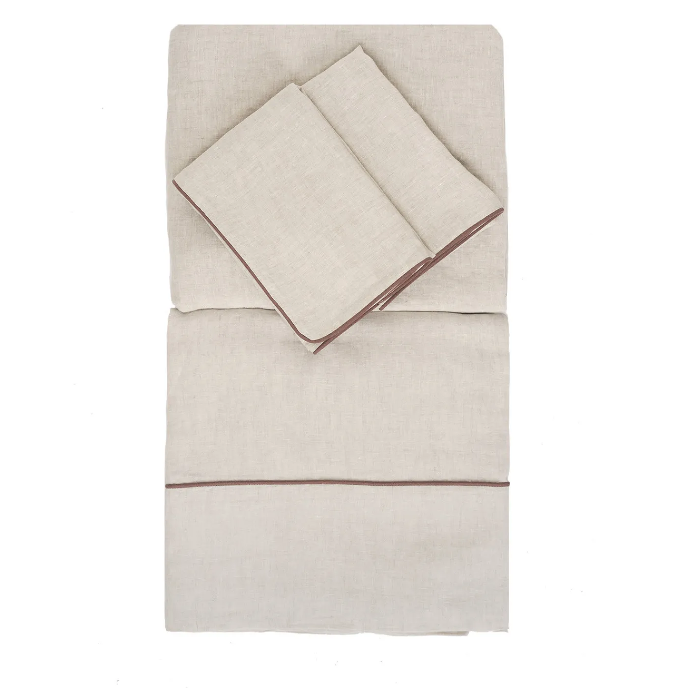 Once Milano Set di lino naturale Summer Bed con profili rosa vintage> Biancheria Da Letto