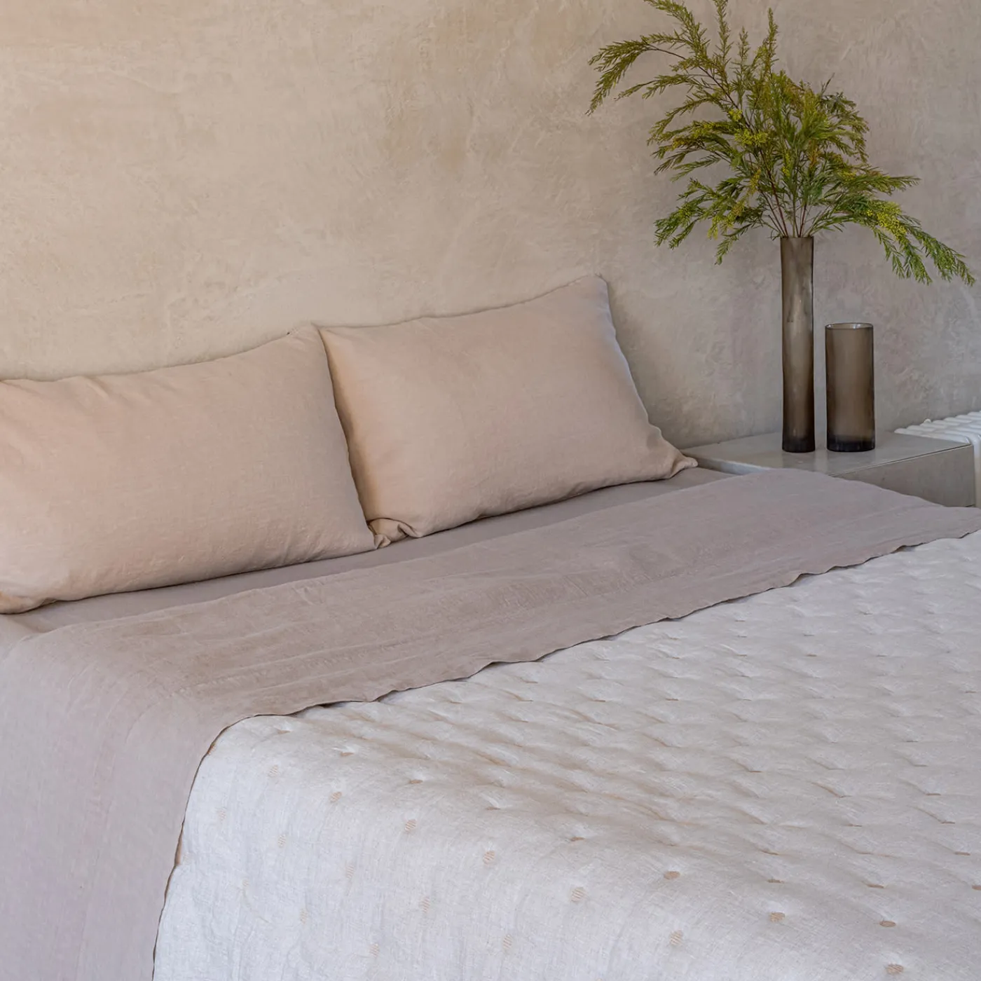 Scoprite l’eleganza della trapunta in lino color crema, un bestseller di Once Milano per tutto l’anno. Questa trapunta fatta a mano presenta un lato naturale e un lato colorato, disponibile in 9 diverse tonalità a scelta. Perfetta per ogni stagione, unisce stile e versatilità per completare il vostro arredamento. Ideale per aggiungere un tocco di lusso e comfort alla vostra camera da letto. Disponibile in varie misure, si prega di chiedere al concierge per altri dettagli.
