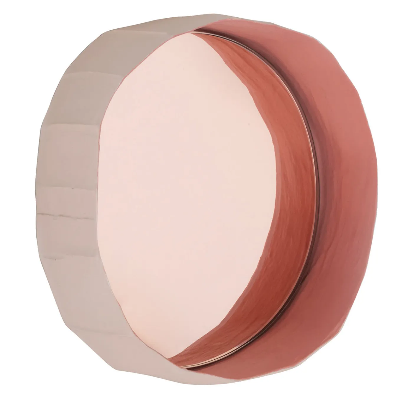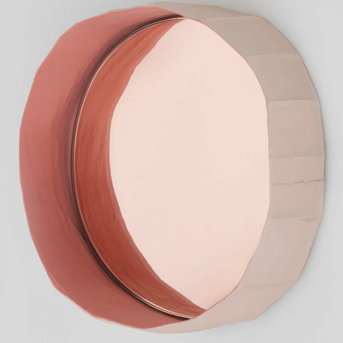 Realizzato a mano in Italia da Paola Paronetto e , questo specchio fonde ceramica e vetro. NINFEA di REFLECTIONS, una fusione di materiali distintivi sviluppata dai loro creatori, unisce un materiale apparentemente leggero come la carta argilla con le linee nitide dello specchio. Il risultato è un equilibrio ponderato e meticoloso, caldo e delicato. L’armonia cromatica è voluta e unisce i due materiali senza soluzione di continuità. Disponibile in un’ampia gamma di colori per richieste personalizzate.