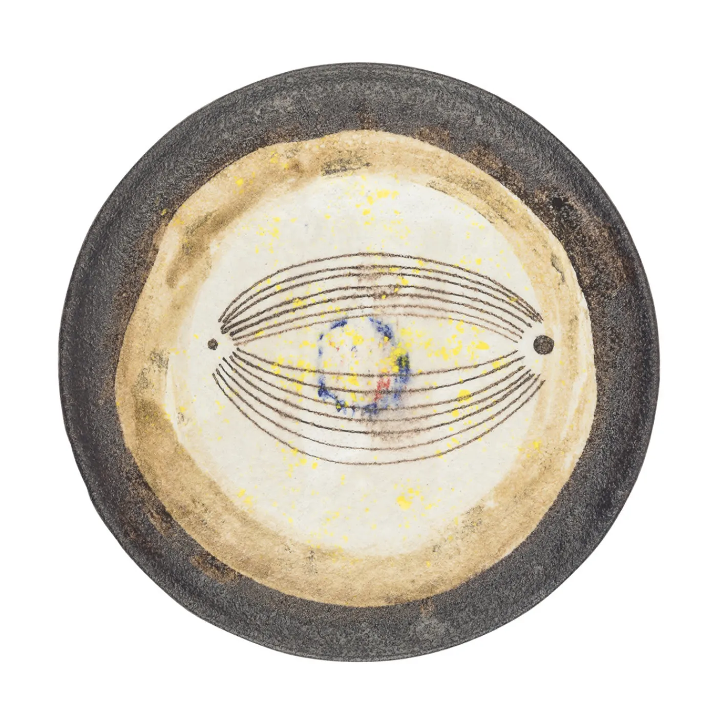 Questo piatto, realizzato a mano secondo l’antica tradizione ceramica di Vietri, in Costiera Amalfitana, presenta una finitura a smalto con decorazioni astratte dai colori caldi che vanno dal marrone al giallo e all’ocra, con una macchia di blu a contrasto al centro. L’effetto è un suggestivo mix di tradizione e innovazione. Disponibile anche nella versione da 18 cm.