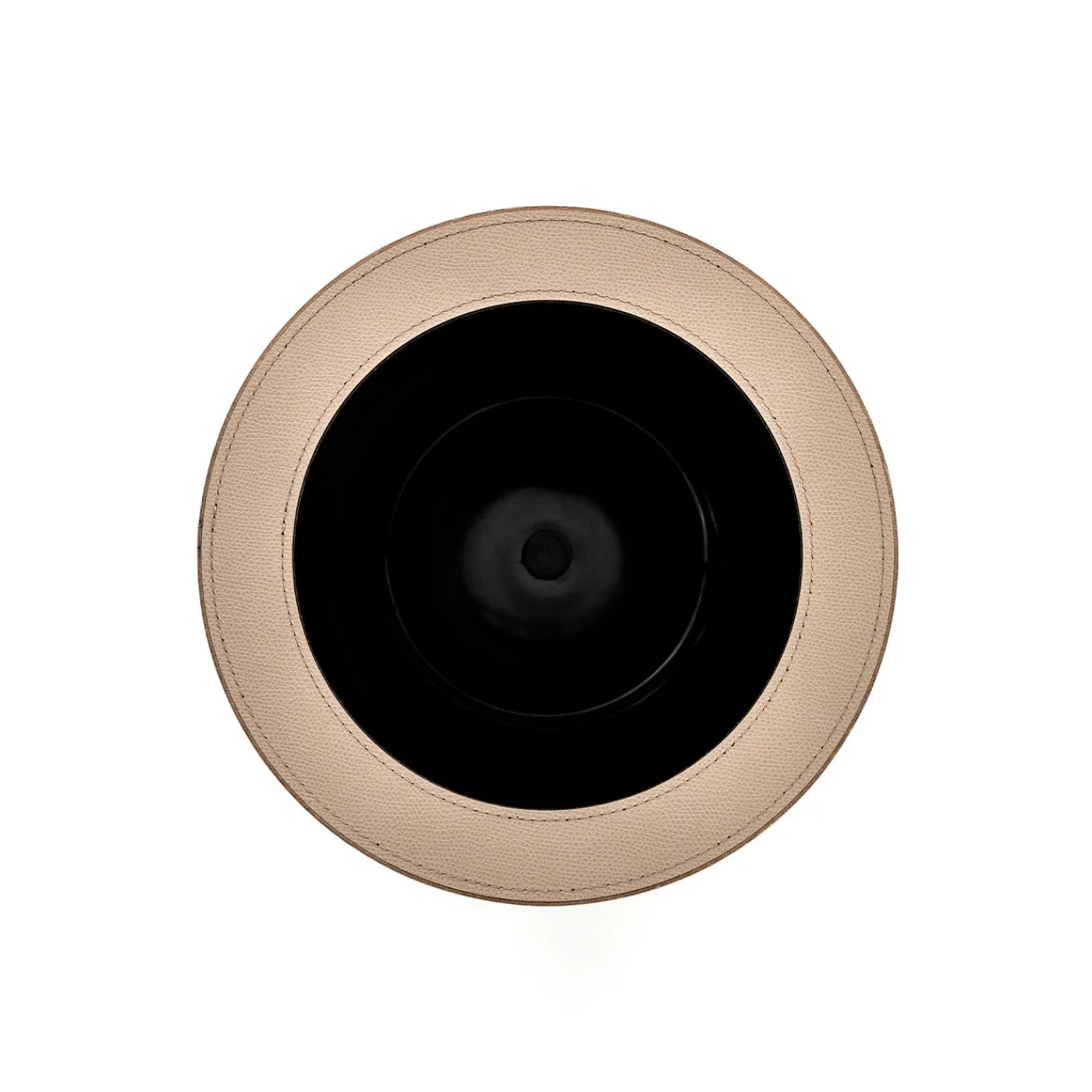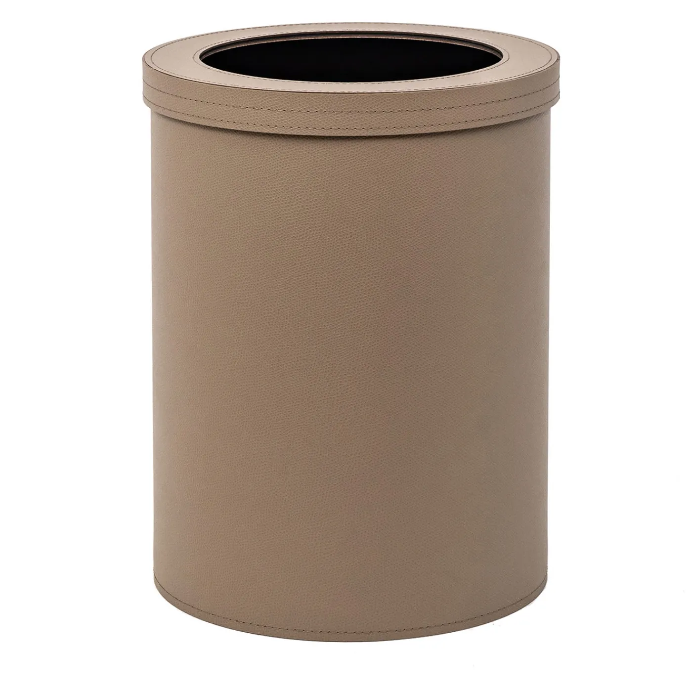 Elegante e innovativo, questo cestino per la carta è interamente rivestito in pelle Malaga, in un versatile color tortora. Realizzato in plastica nera per un uso facile e pratico, è dotato di un coperchio aperto rimovibile che gli conferisce una qualità compatta.