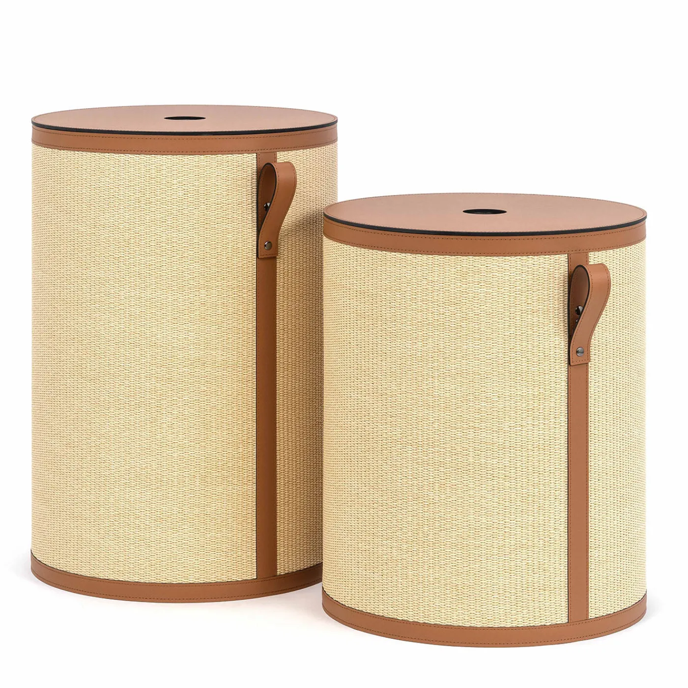 Il cesto rotondo alto Aurora presenta una silhouette rotonda elegante, impreziosita da un rivestimento in paglia che aggiunge una texture naturale agli spazi bagno. Accentuato da un robusto profilo in pelle lungo i bordi e da un comodo manico in pelle, questo cesto alto combina praticità con un’estetica raffinata. Disponibile in due dimensioni come parte della collezione Aurora 2025, e presenti nel catalogo Artemest, offre soluzioni di stoccaggio versatili mentre completa gli interni contemporanei.