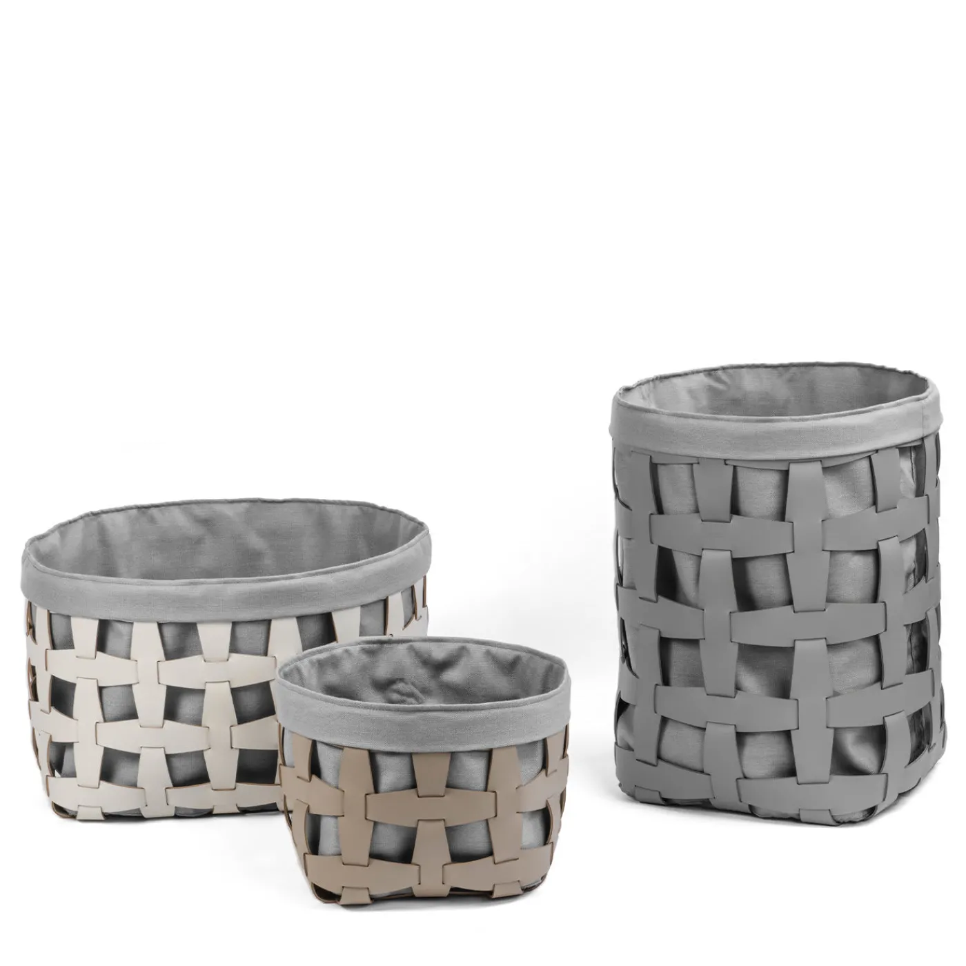 Combinando un look pulito e moderno con l’eleganza di una pelle morbida ed elastica, questo cesto per la biancheria sarà un’aggiunta accattivante a qualsiasi camera da letto, bagno o vanità. La struttura è realizzata in pelle resistente all’acqua di colore marrone, intrecciata in un motivo a croce. La struttura sostiene il sacchetto interno grigio fissato alla pelle con un gancio. Questo cesto è disponibile in quattro misure, mentre la struttura e la borsa sono disponibili nei colori classici o rispettivamente blu, tortora, avorio, fantasia e azzurro. Contattare il Concierge per prezzi e dettagli.
