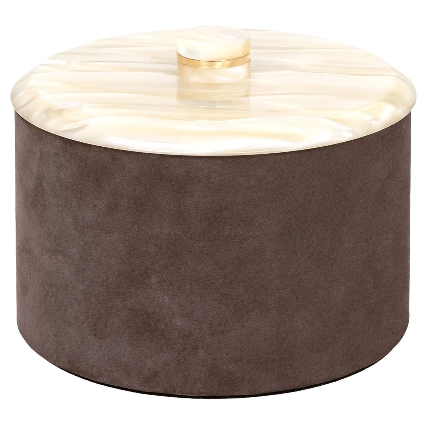 Una pregiata pelle marrone avvolge la silhouette cilindrica di questo prezioso cofanetto, un design esclusivo completato da un piano in resina che vanta uno splendido effetto madreperla. Sigillato da un terminale coordinato, il top illumina l’intero design, anticipando in qualche modo la lucentezza dei gioielli che potrebbero essere raccolti al suo interno. Nel catalogo Artemest sono disponibili diverse dimensioni e varianti di finitura.