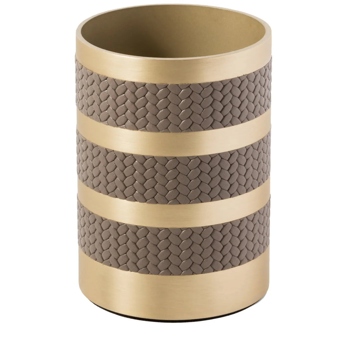 Raffinato e moderno, questo portaspazzolino è un’aggiunta elegante a qualsiasi bagno o stanza da bagno. La sua forma cilindrica è realizzata in ottone spazzolato e ornata da tre bande parallele di pelle marrone ricco, con una texture sorprendente che contrasta con la superficie liscia del metallo. Abbinato agli altri pezzi della serie, questo oggetto aggiungerà un tocco squisito alla casa. Si prega di contattare il concierge per altri tipi di pelle per decorare questo e altri pezzi Saturno.