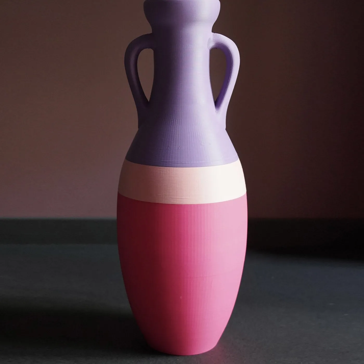 Questo vaso è una reinterpretazione pop della forma archetipica delle anfore romane. L’ispirazione principale per questo oggetto è stato il sito archeologico di Montestaccio studiato da Heinrich Dressel. Il vaso è prodotto con l’uso della stampa 3D e della migliore qualità di PLA (termoplastica derivata da risorse rinnovabili, compostabile in impianti industriali). Questo vaso sostenibile ed elegante è il design perfetto per un ambiente chic.