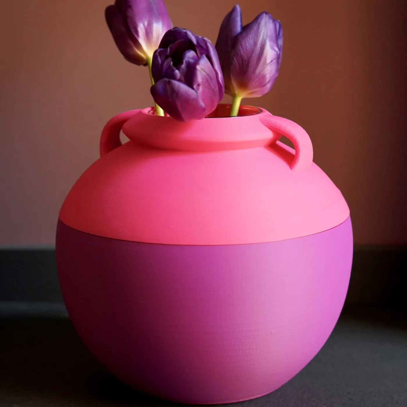 Reinterpretazione pop di un design archetipico. Vaso XL basato sulla tavola tipologica delle anfore romane di Heinrich Dressel, proveniente dal sito archeologico di Monte Testaccio a Roma. Questo vaso utilizza la tecnologia di stampa 3D per trasformare i filamenti di PLA in un’iconica silhouette classica. Realizzato solo con il miglior PLA (termoplastica derivata da risorse rinnovabili, compostabile in impianti industriali). Inserto in vetro incluso.