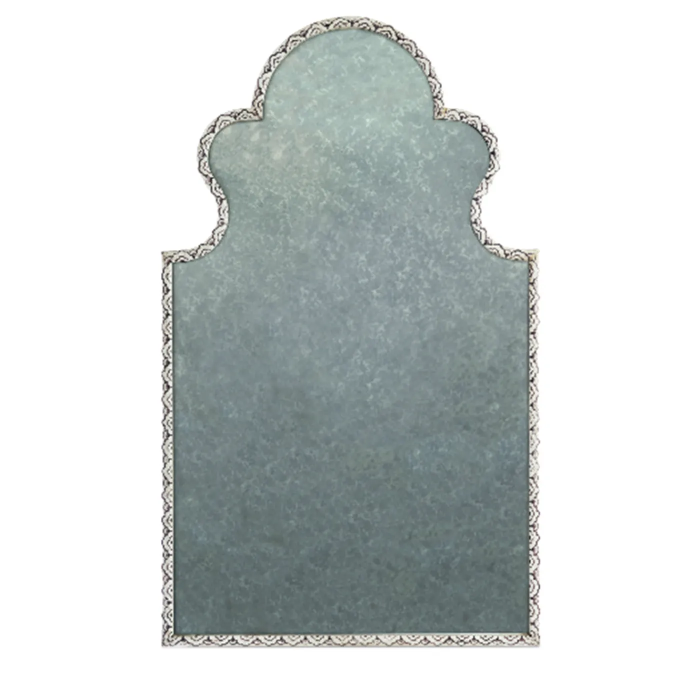 Ispirato alle finestre veneziane che portano il marchio dell’opera di Palladio, questo specchio perfettamente simmetrico ha una cornice in legno con top ad arco e bordi smerlati. La silhouette accattivante è esaltata dalla finitura bianca, decorata a mano con un disegno smerlato nero che aggiunge un tocco di glamour vintage. Questo specchio semplice ma di grande effetto sarà un’ottima aggiunta a qualsiasi ambiente, creando un punto focale in un ingresso, un soggiorno o una camera da letto.