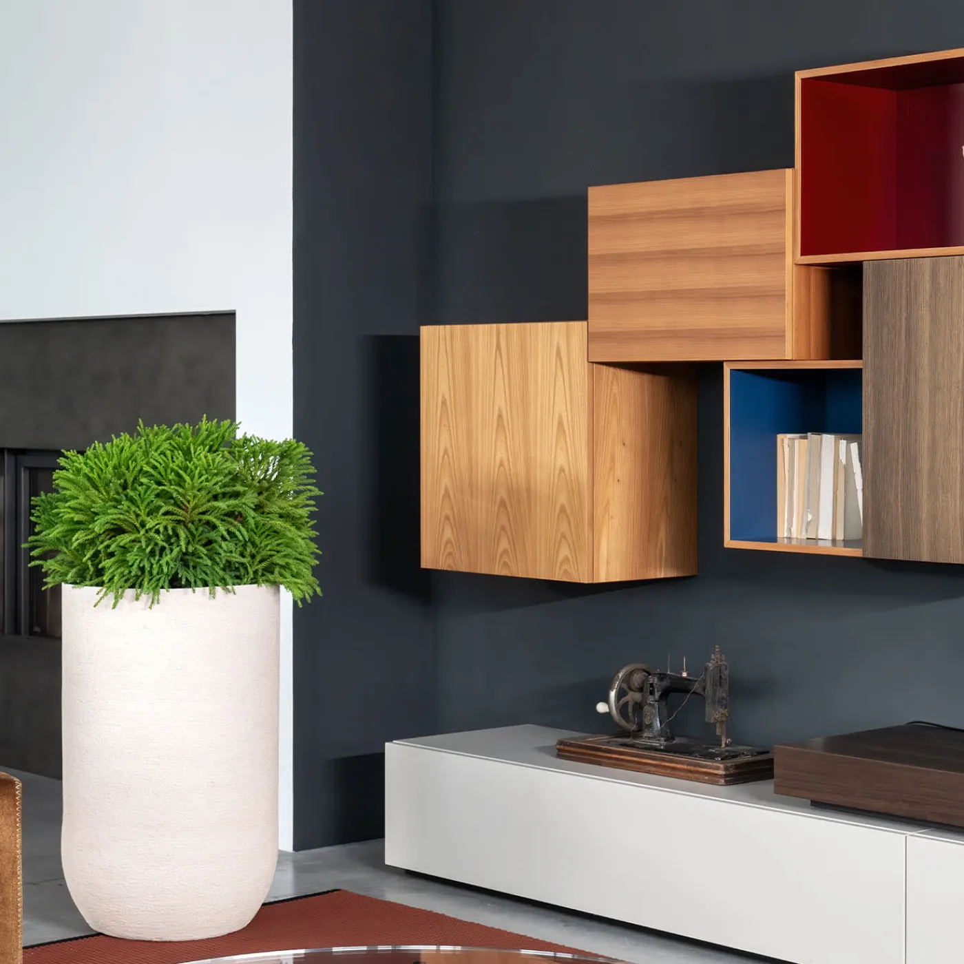 Linee armoniche e pulite definiscono questo raffinato vaso in ceramica, dove l’ampia colorazione bianca sembra ammorbidire i suoi già sottili dettagli graffiati. Abilmente realizzato e decorato a mano, il pezzo è sottoposto a una fase di essiccazione naturale seguita da una cottura a oltre 1000° per garantire un uso sicuro all’esterno. Leggermente incurvato alla base, il vaso sintetizza sapienza artigianale e spirito contemporaneo.