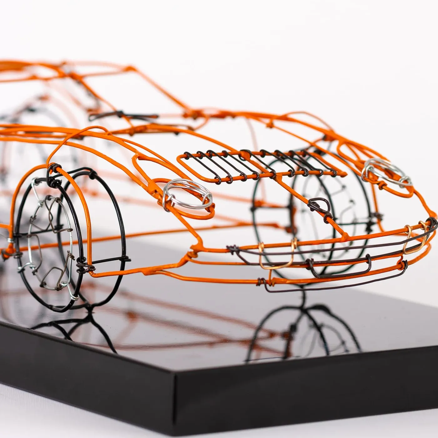 Caratterizzata da un’accattivante e vivida tonalità arancione, combinata con dettagli in bronzo, argento e ferro nero, questa splendida statuetta è minuziosamente realizzata a mano in filo metallico. Poggiata su una base nera lucida, raffigura una Lamborghini, un’idea regalo unica per un appassionato di auto. Il modello dell’auto è personalizzabile, si prega di contattare il Concierge per i dettagli.