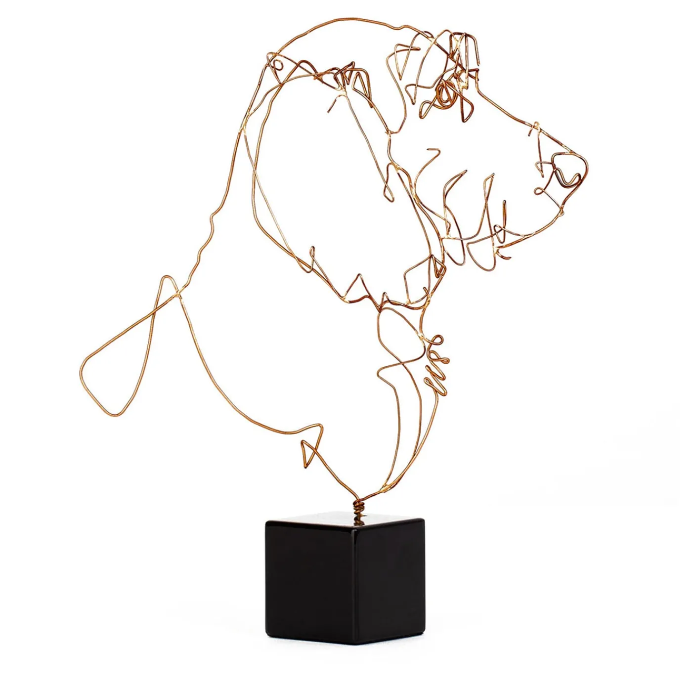 Una miniatura abilmente realizzata a mano del muso di un bassotto, questa statuetta può essere personalizzata con il ritratto del proprio cane o di qualsiasi altra razza canina. Un regalo originale per un amante degli animali, realizzato in filo metallico e sostenuto da una base a cubo nera lucida. Sono disponibili altre 69 razze canine; chiedete al Concierge per maggiori informazioni e opzioni di personalizzazione.