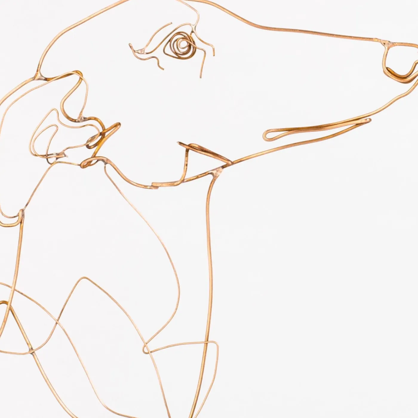 Miniatura abilmente realizzata a mano del muso di un Levrier, questa statuetta può essere personalizzata con il ritratto del proprio cane o di qualsiasi altra razza. Un regalo originale per un amante degli animali, realizzato in filo metallico e sostenuto da una base a cubo nera lucida. Sono disponibili altre 69 razze canine; per ulteriori informazioni e opzioni di personalizzazione, contattare il Concierge.