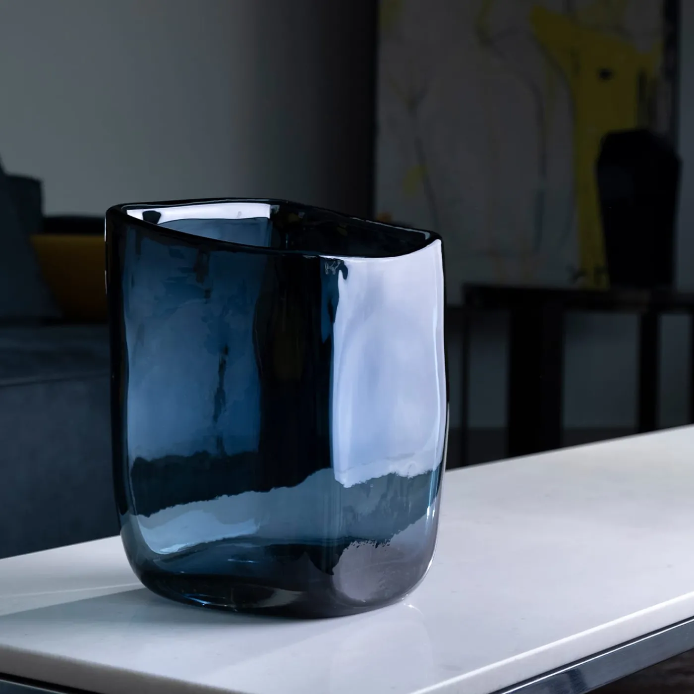 Trapezio è un vaso della collezione Essentials disegnata da Federico Peri per Purho nella primavera del 2021. Creato partendo da un cilindro di vetro cavo ovale e conico, Trapezio si distingue per le sue facce appiattite, i bordi arrotondati e la bocca segnata da un pronunciato taglio diagonale arrotondato creato durante la lavorazione grezza quando il vetro è ancora incandescente. Un’apparente irregolarità conferisce dignità alle linee e carattere al prodotto finale.