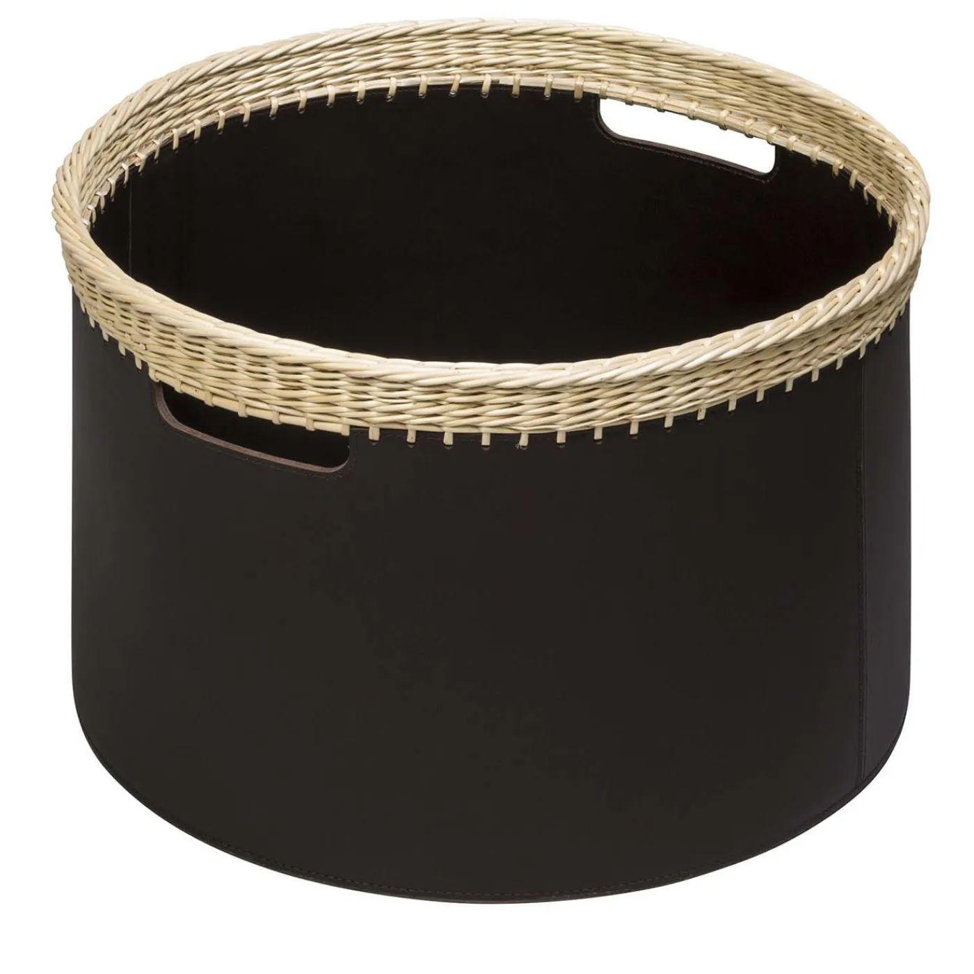 Parte della Collezione Como di cestini interamente realizzati a mano in morbida pelle di sella in colori classici, è una raffinata soluzione per riporre oggetti che può essere utilizzata in qualsiasi punto della casa. La sua forma rotonda è caratterizzata da manici rettangolari intagliati e da un’accattivante rifinitura intrecciata a mano intorno al bordo in vimini naturale, che crea un contrasto sorprendente con il colore nero della pelle. Abbinato agli altri pezzi della collezione, questo cestino è un modo eccellente per riporre oggetti vari in camera da letto, in soggiorno o in bagno.